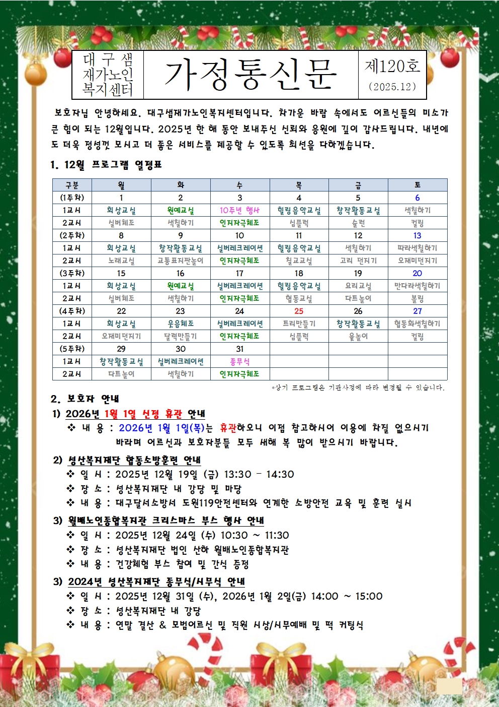 2025년 12월 프로그램 계획표