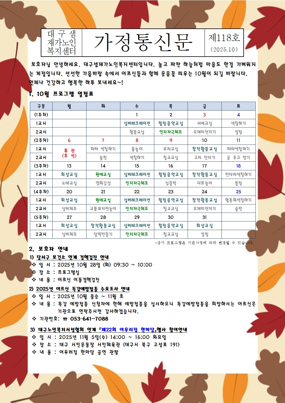 2025년 10월 프로그램 계획표