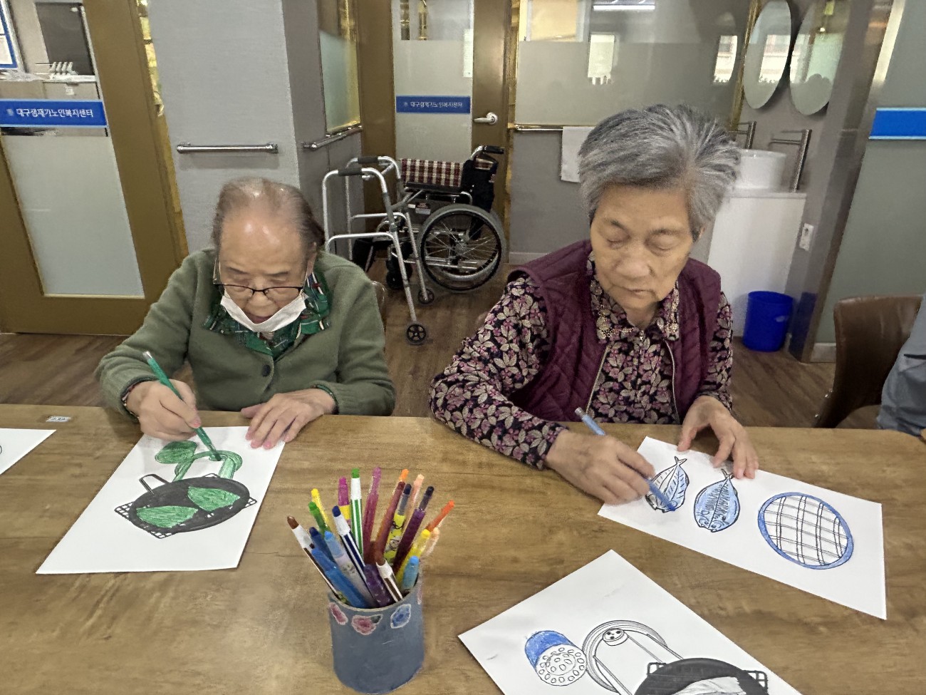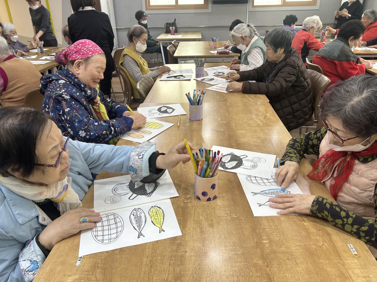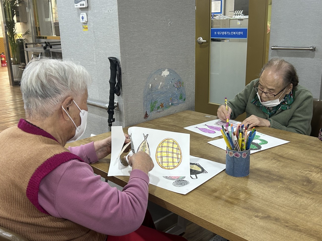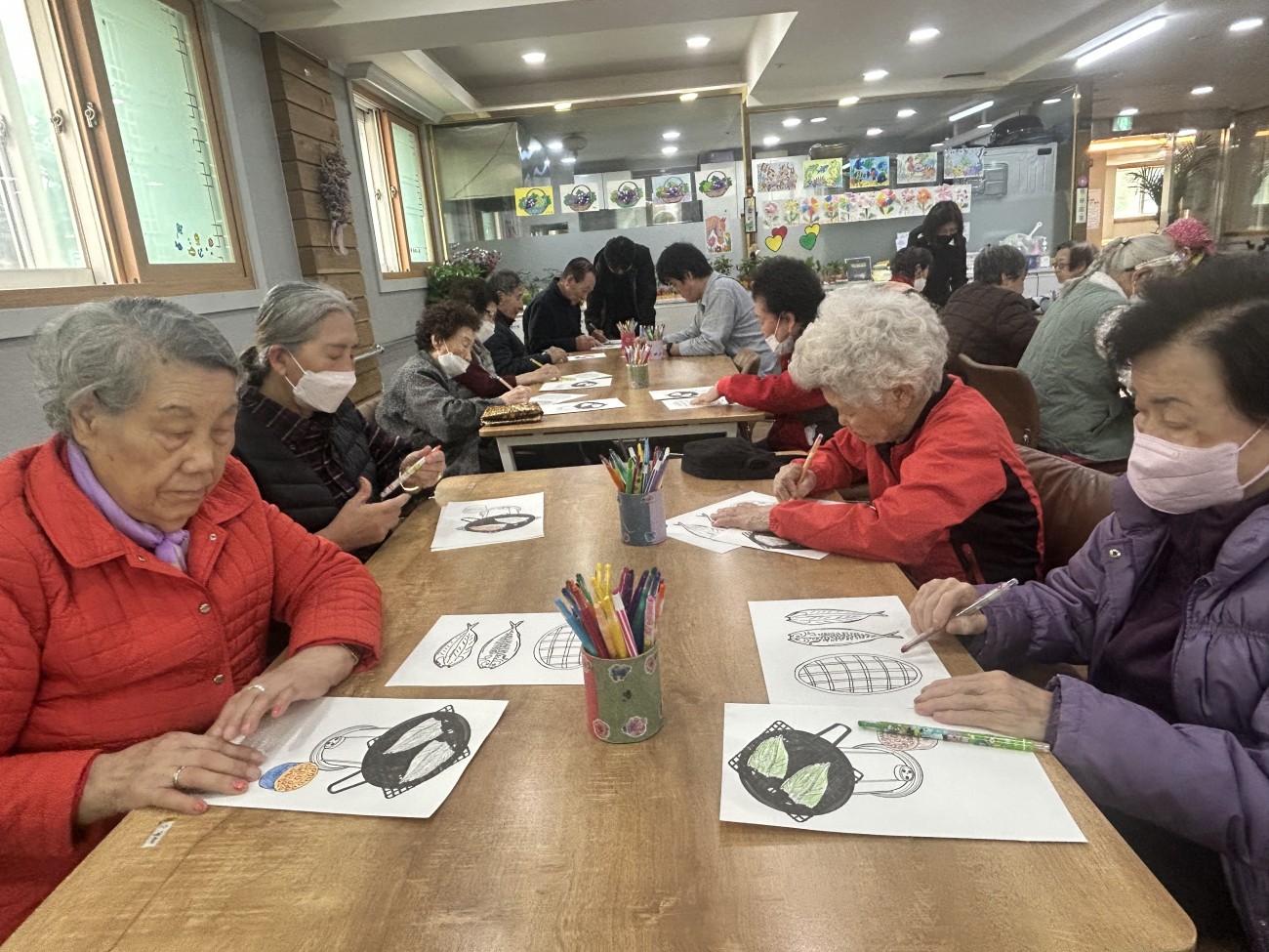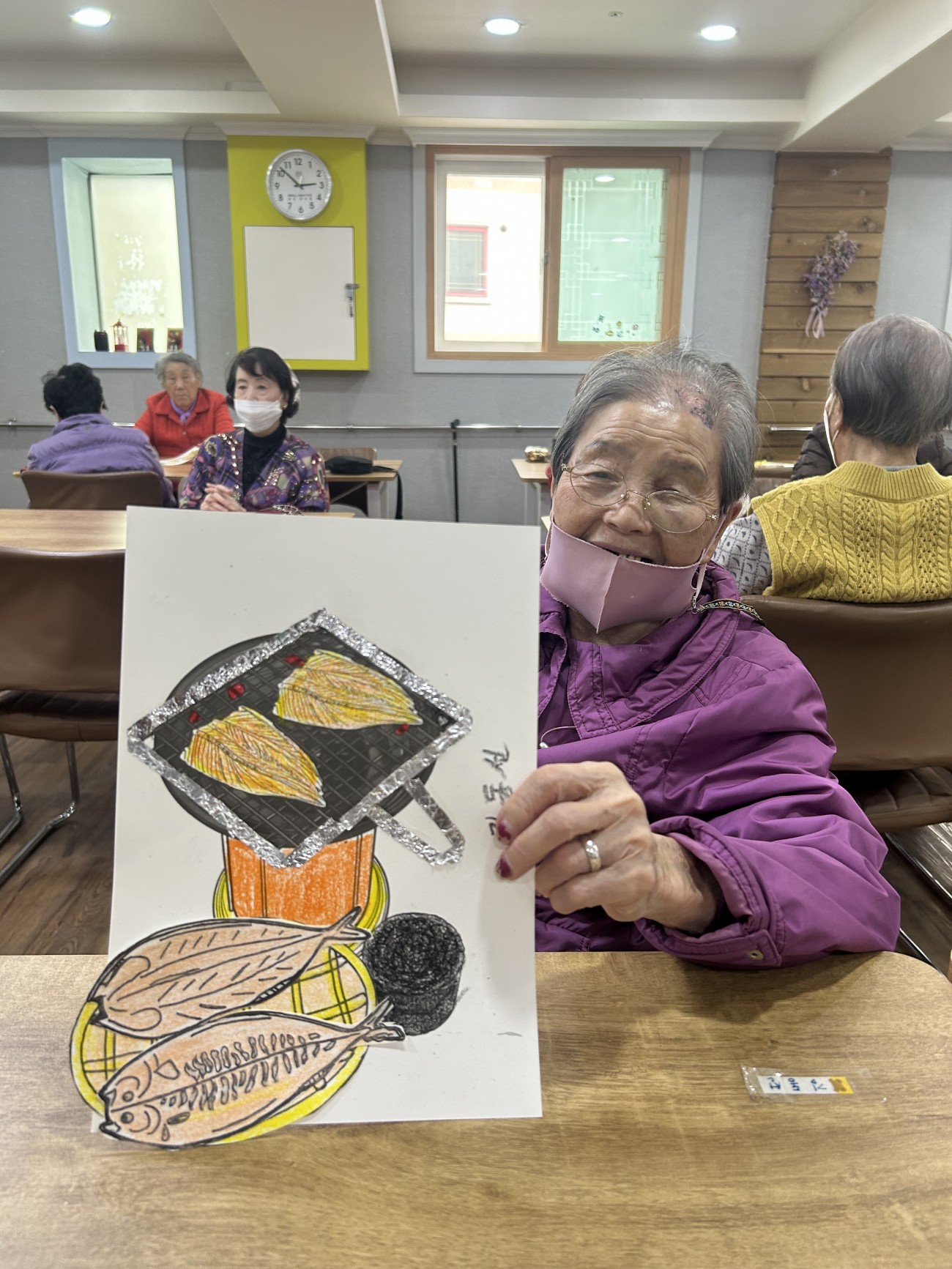 2025.10.30 창작활동교실 최고관리자 0 490 2025.10.30 15:02 오늘 주간보호에서는 어르신들과 함께 창작활동교실을 진행하였습니다.고등어구이 도안을 색칠한 뒤 은박지를 활용해 불판의 질감을 실감나게 표현하며 노릇노릇, 먹음직스러운 고등어를 완성했어요~어르신들께서는 연탄불에 고등어를 구워 먹던 옛 추억을 떠올리시며 웃음 지으셨답니다!활짝 웃으시는 어르신들의 모습에서 따뜻한 정과 향수를 느낄 수 있는 시간이었습니다^^