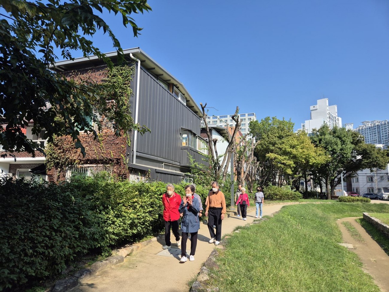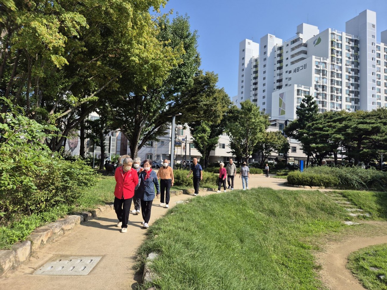 2025.10.11 공원산책 최고관리자 0 597 2025.10.13 13:25 오늘 주간보호에서는 점심 식사 전 어르신들과 함께 센터 앞 선사유적공원으로 산책을 다녀왔습니다^^ 나무 그늘 아래 벤치에 앉아 담소를 나누시며, 푸르른 풍경을 바라보며 힐링의 시간을 가지셨답니다.어르신들께서는 “숲 속에 온 것 같다”고 하시며 편안하고 여유로운 오전 시간을 보내셨어요 ●'◡'●대구샘주간보호센터에서는 궂은 날씨를 제외하고 매일 산책을 진행하며, 어르신들의 보행훈련과 건강 유지를 돕고 있습니다~