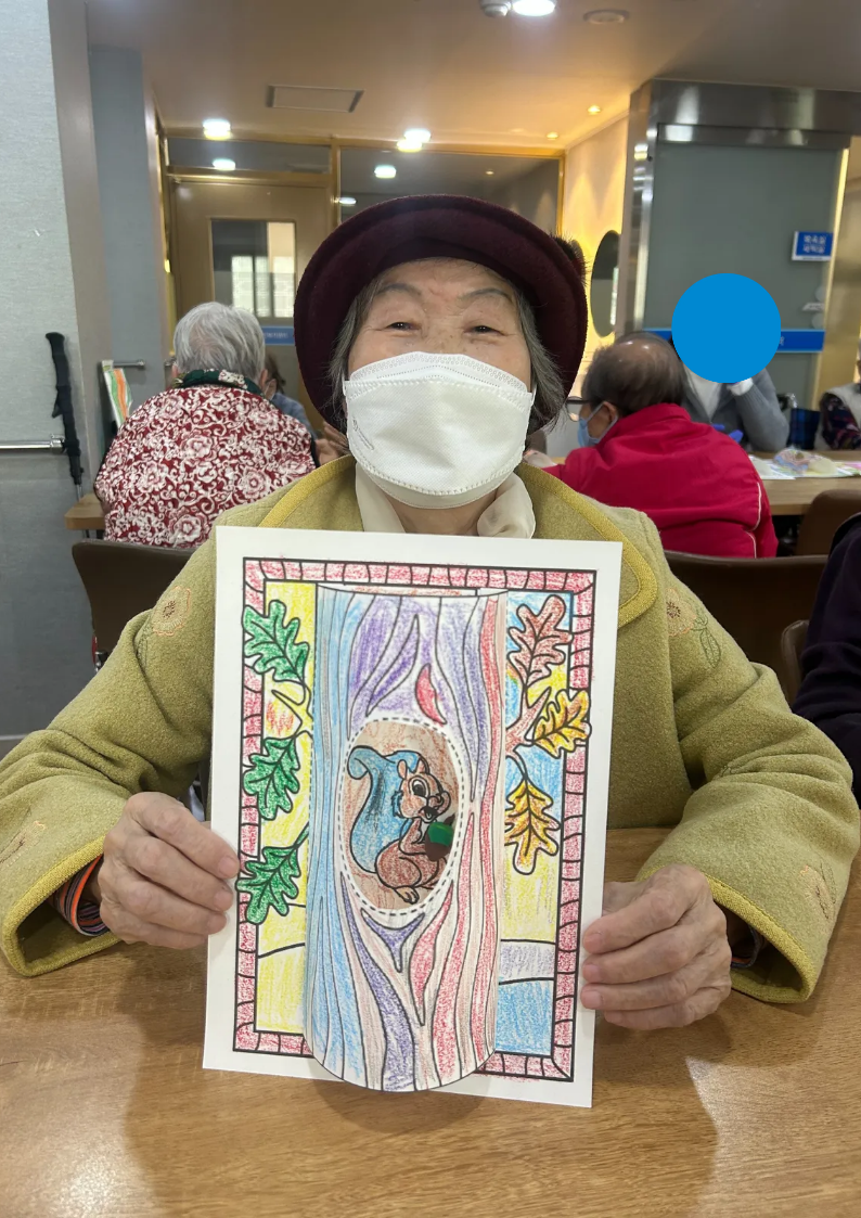 2025.11.21 창작활동교실 프로그램 최고관리자 0 85 11.21 15:04 오늘 주간보호에서는 창작활동교실 프로그램을 진행했습니다.도안을 색칠하고 종이를 풀로 붙이면서, 나무 속에 숨어있는 다람쥐를 입체적으로 표현해보는 시간을 가졌어요.점토로 도토리까지 만들어 작품에 생동감을 더했답니다.어르신들께서 “이건 내가 가져가야지~” 하시며 흐뭇해하시는 모습이 참 따뜻했어요~완성된 작품을 손에 들고 웃으시는 표정이 너무 사랑스러웠던 하루였답니다^^