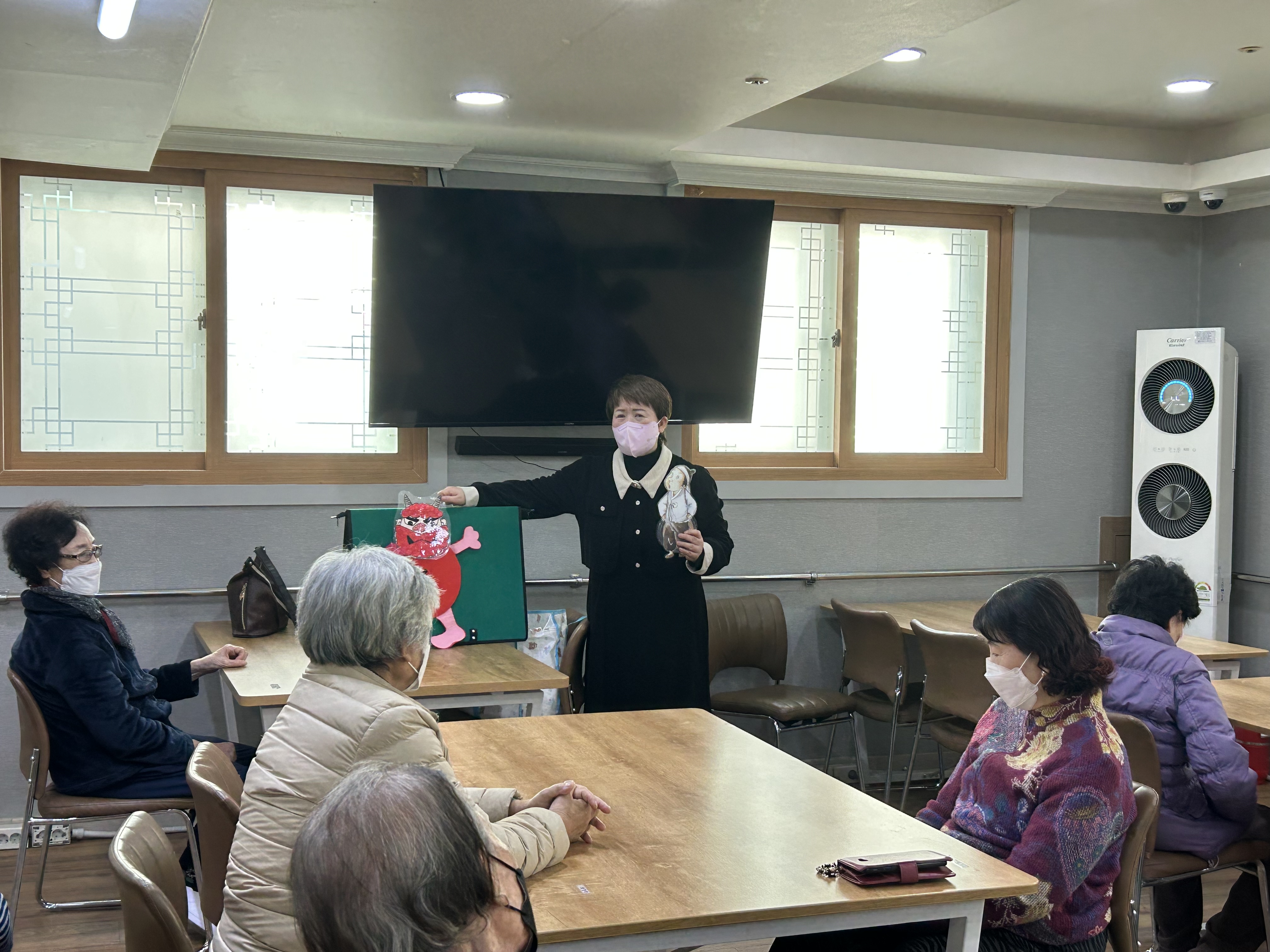 2025.12.01 회상교실 프로그램 최고관리자 0 42 12.01 14:33 오늘 주간보호에서는 회상교실 프로그램을 진행했습니다.선생님께서 ‘도깨비와 나그네’ 이야기를 들려주시며 어르신들과 옛 기억을 회상하는 시간을 가졌는데요.졸린 오후임에도 불구하고 어르신들께서는 눈을 초롱초롱하게 뜨시며 이야기에 집중해주시고 적극적으로 참여해주셨답니다~따뜻한 공감과 웃음이 오가는 즐거운 시간이었습니다^^