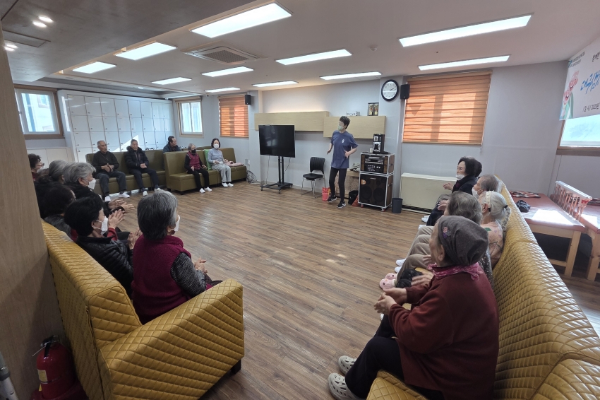 2026.01.14 실버레크레이션 프로그램 최고관리자 0 255 01.14 15:23 나른해지기 쉬운 오늘 오후, 우리 센터에서는 어르신들의 활력을 되찾아드리는 실버 레크리에이션 프로그램을 진행했습니다^^신나는 음악 리듬에 맞춰 팔과 다리를 힘차게 움직이다 보니, 쌓였던 피로가 어느새 웃음으로 바뀌었는데요.적극적으로 참여하며 즐거워하시는 어르신들의 모습 덕분에 센터 전체가 활기찬 에너지로 가득 찼던 시간이었습니다.
