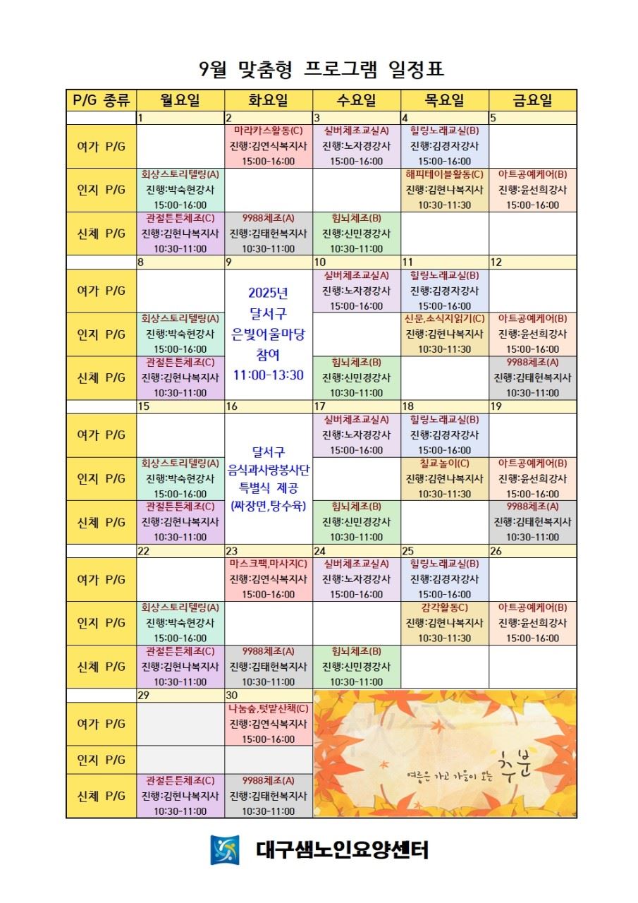 2025년 9월 프로그램 계획표 안내드립니다 ♥