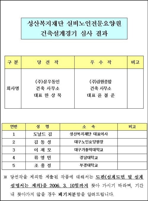 실비노인전문요양시설 건축설계 경기 당선작 발표