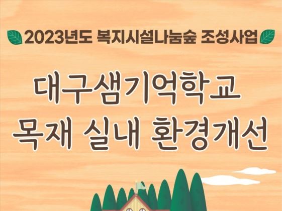 대구샘기억학교는 2023년도 복지시설나눔숲 조성사업에 선정되어 프로그램실, 생활실, 물리치료실을 리모델링하게 되었습니다.