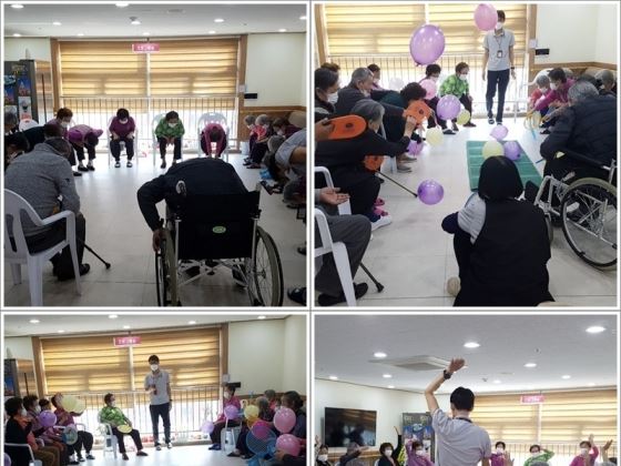레크레이션 프로그램 - 비몽이게임 성산홍보실 0 2369 2021.03.25 10:24 - 2021.03.23. 대구성로원 '레크레이션 프로그램 - 비몽이게임' - 늘은 풍선을 이용하여 비몽이 게임을 했어요. 먼저 준비운동을 하고 편을 갈라 풍선을 반대편으로 비몽이로 쳐서 넘기면 이기는 게임입니다. 다들 처음에는 쉬엄쉬엄 하시다가 승부욕이 생겨서 얼마나 열정적으로 하시는지 땀까지 흘리시고, 프로그램이 끝나고 나니 다들 신나게 잘 놀았다며 다음에 또 한판 하자고 하시네요.