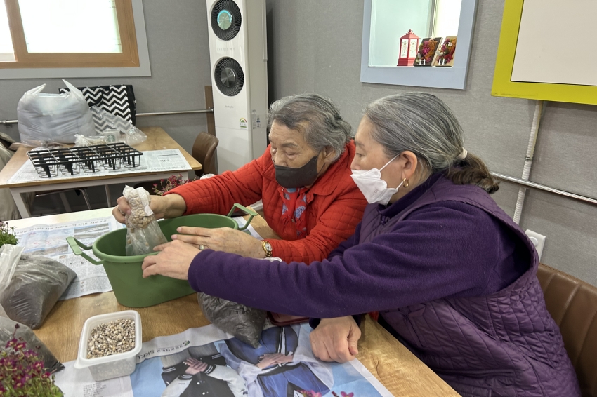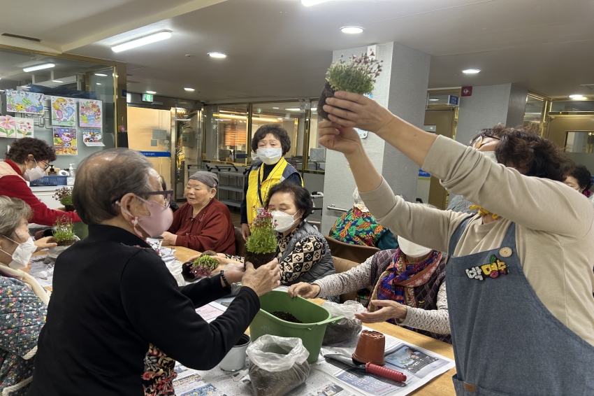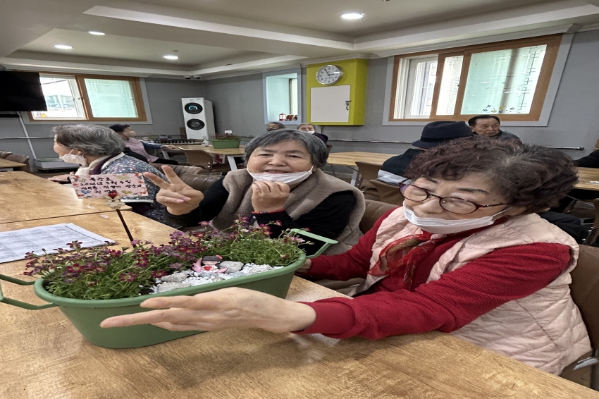 2026.03.03 원예교실 프로그램 최고관리자 0 1 2시간전 오늘 주간보호센터에서는 화사한 천상초를 심으며 봄 기운을 미리 만끽해 보았습니다.커다란 화분에 천상초를 정성스레 옮겨 심고, 어르신들의 성함이 적힌 예쁜 팻말과 아기자기한 피규어로 나만의 작은 정원을 완성했는데요. 옆에 계신 어르신과 흙을 나누고 꾸미는 방법을 의논하며, 센터 안은 시종일관 화기애애한 소통의 꽃이 피어났습니다.함께해서 더 즐거웠던 시간! 서로 돕고 마음을 나누며 완성한 화분처럼, 우리 어르신들의 하루도 오늘처럼 늘 활짝 피어나길 바랍니다.