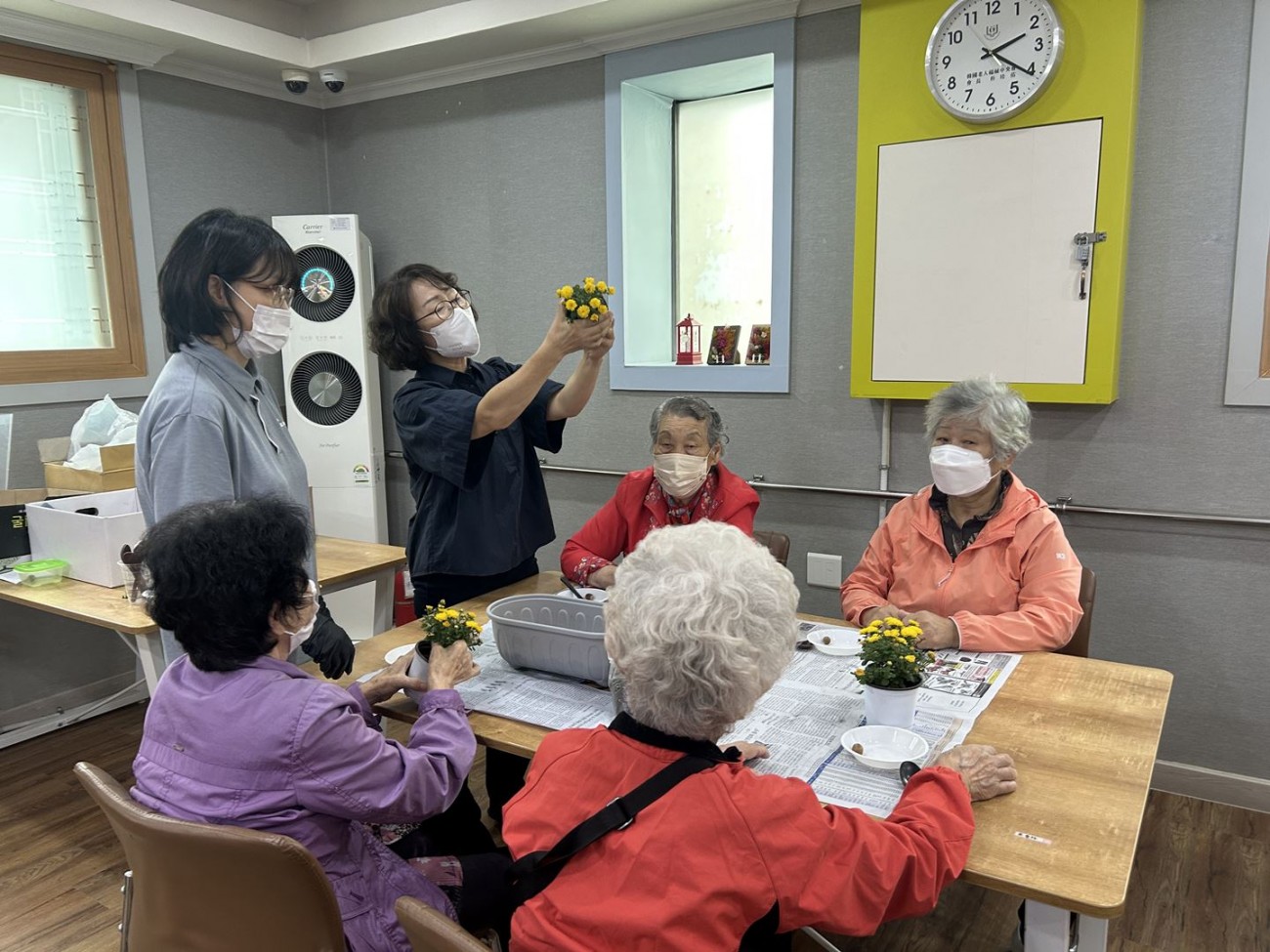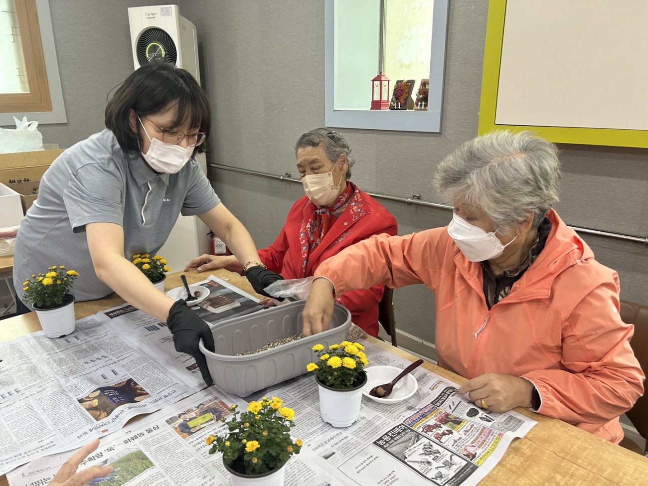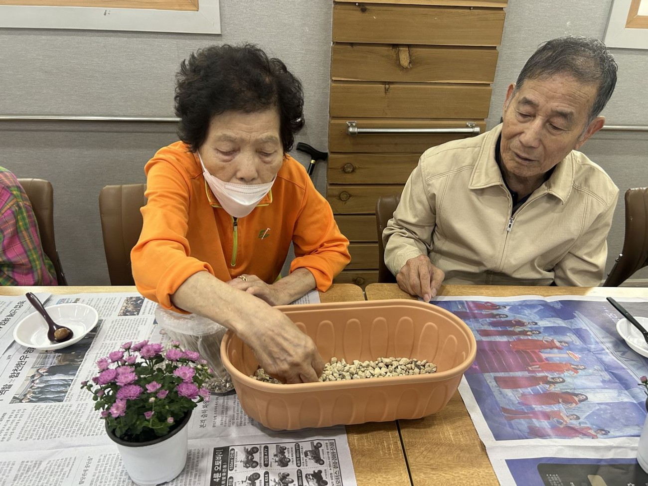 2025.10.14 원예교실 프로그램 최고관리자 0 226 10.14 15:11 오늘 주간보호에서는 원예교실 프로그램을 진행했습니다.알록달록한 소국화를 큰 화분에 옮겨심고, 돌과 흙으로 채워준 뒤 예쁜 푯말을 꽂아 완성했어요. ❛ ᴗ ❛.어르신들께서는 향긋한 국화 향기를 맡으며 “가을이 왔네~” 하시며 미소를 지으셨어요.손끝으로 흙을 만지며 마음도 차분해지는 힐링의 시간이었답니다^^