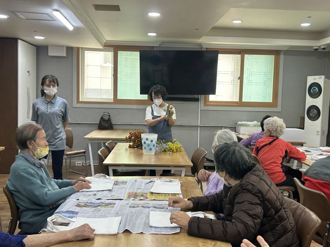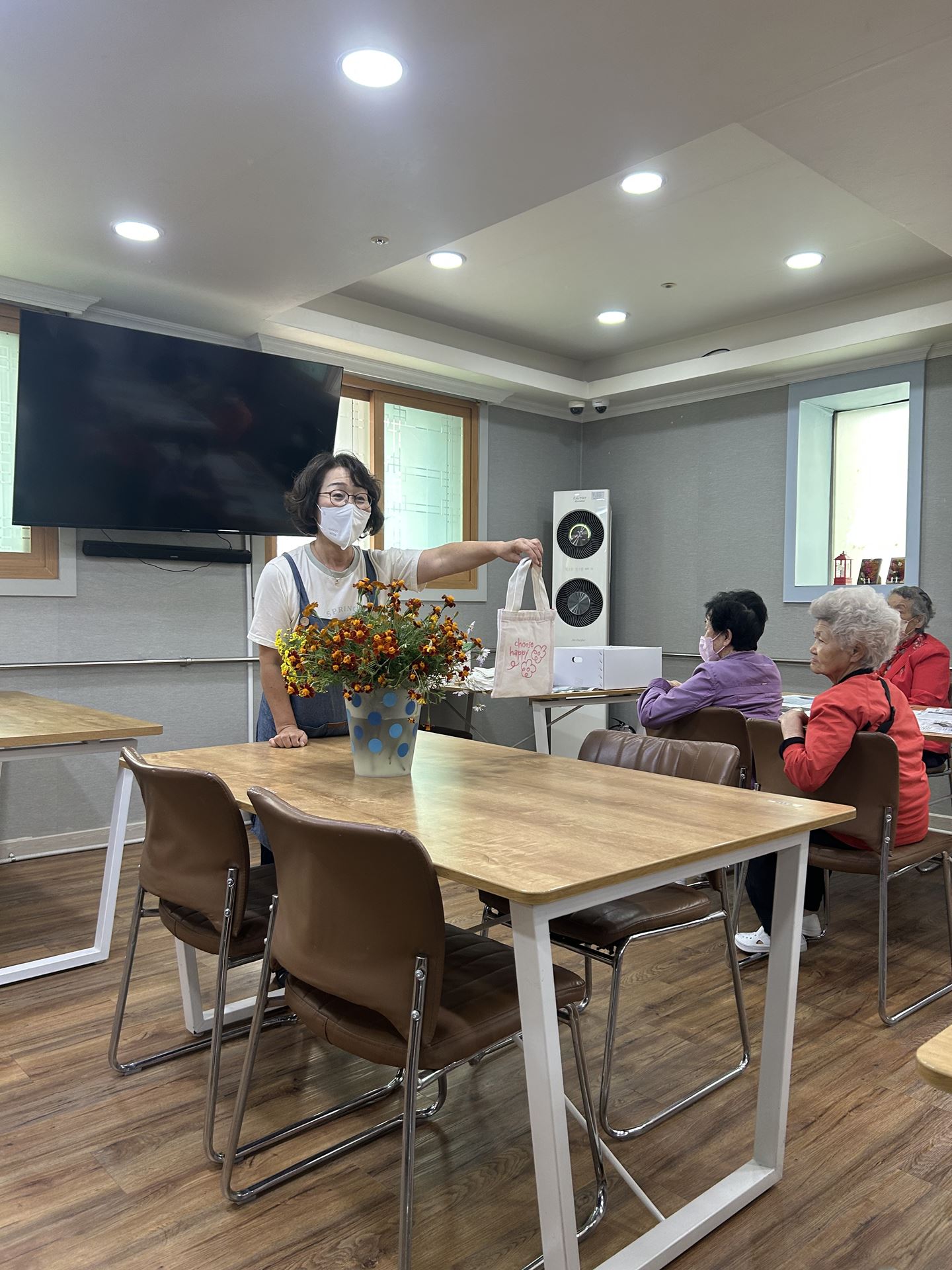 2025.10.21 원예교실 프로그램 최고관리자 0 242 10.21 15:06 오늘 주간보호에서는 원예교실 프로그램을 진행했습니다.예쁜 천가방 위에 알록달록한 꽃잎을 올려 망치로 톡톡 두드리고, 동전으로 문질러 꽃물을 들였어요~어르신들께서는 망치로 ‘탕탕!’ 두드리며 스트레스도 푸시고, 몰입하시는 모습을 보이셨어요.향긋한 꽃향기와 예쁘게 완성된 가방에 미소를 지으시며 즐거워하셨답니다❁´◡`❁