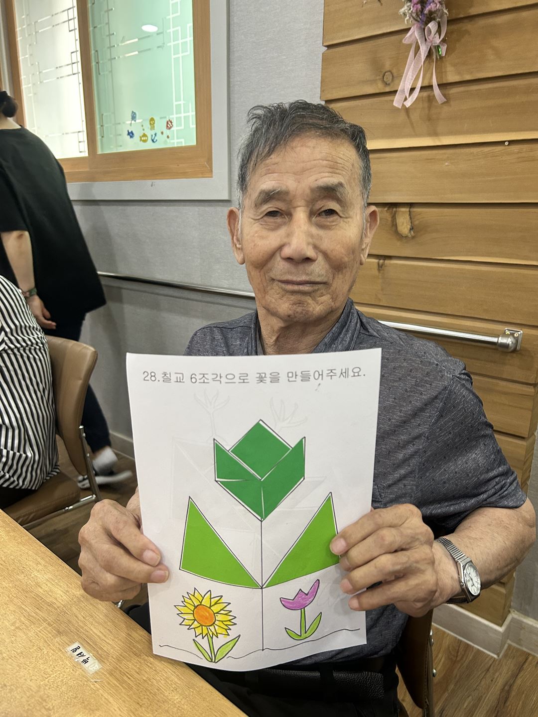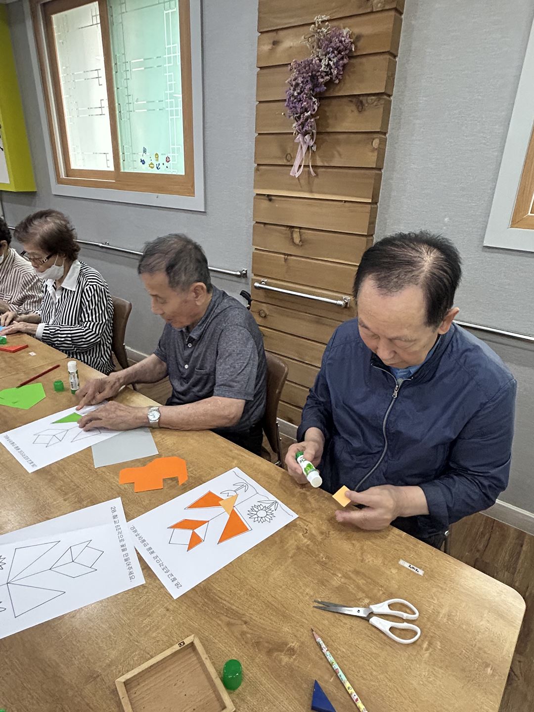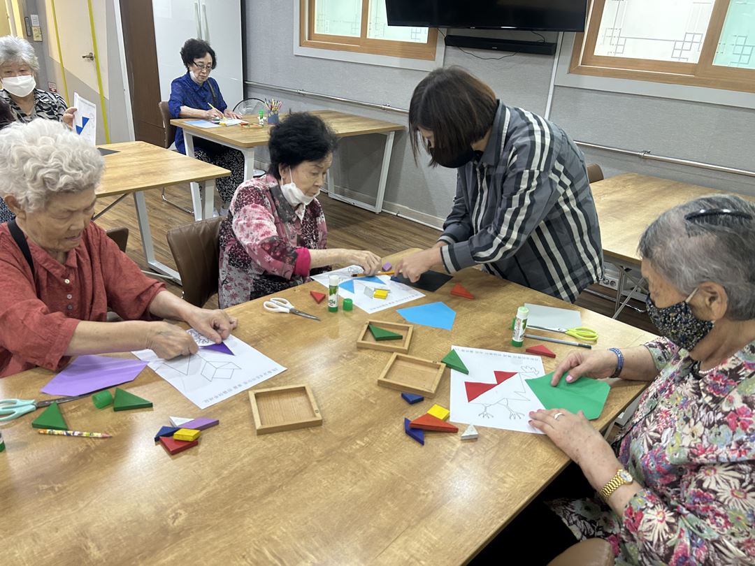 2025.09.25 칠교놀이 프로그램 최고관리자 0 319 09.25 15:49 오늘 주간보호에서는 칠교놀이 프로그램을 진행했습니다. 색종이에 칠교 모양을 직접 그리고 오려, 도안에 맞게 붙이는 활동으로 진행되었는데요~ 어르신들께서 모양을 이리저리 돌려 맞춰보시며 집중하고 즐겁게 참여하셨습니다^^ 특히 꽃 도안을 완성했을 때는 환하게 웃으시며 뿌듯해하시는 모습을 보여주셨답니다. ❁´◡`❁
