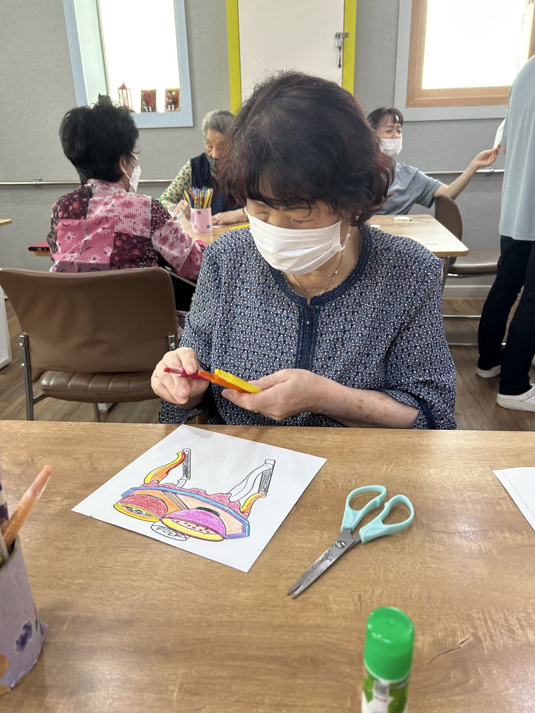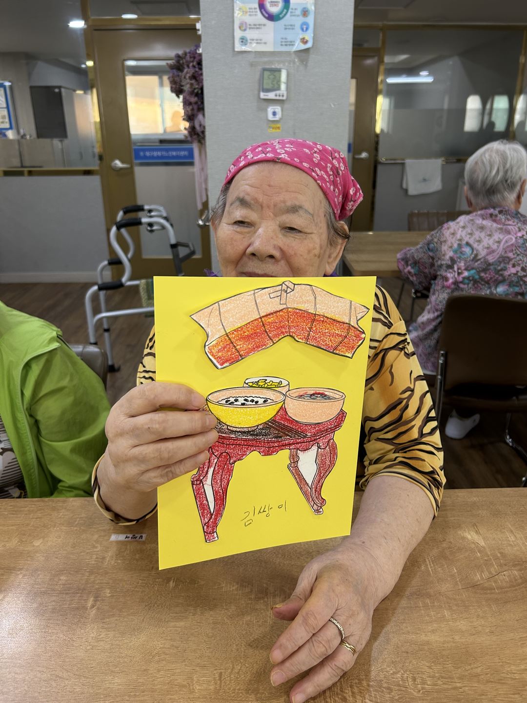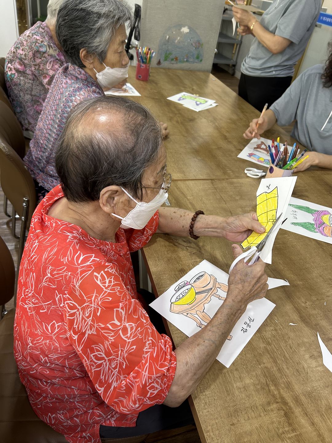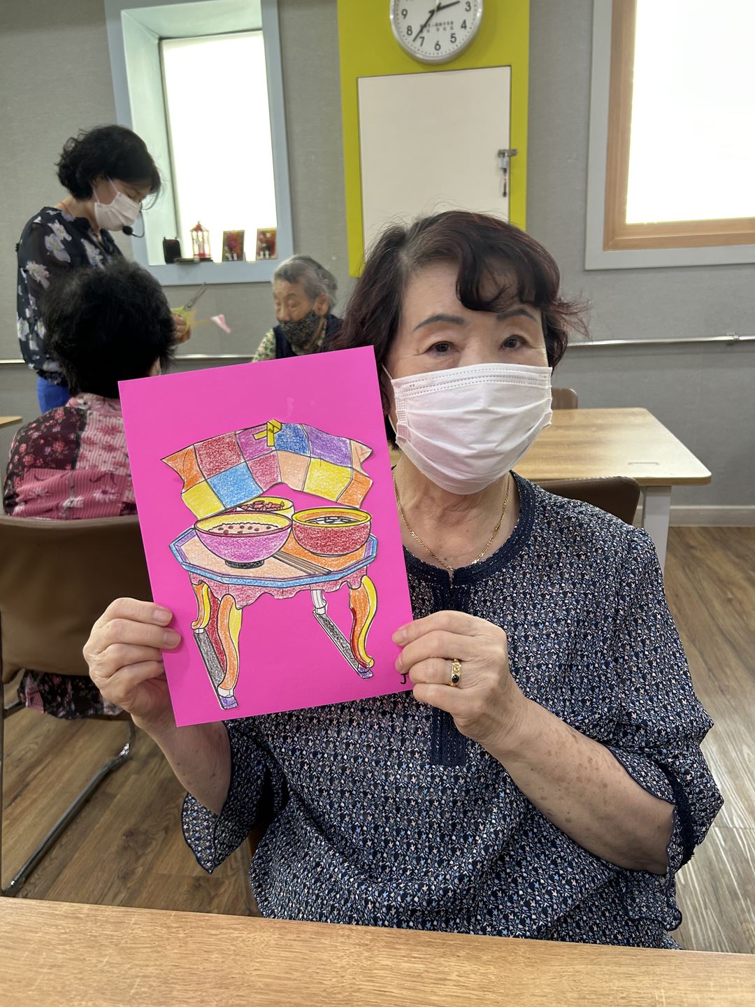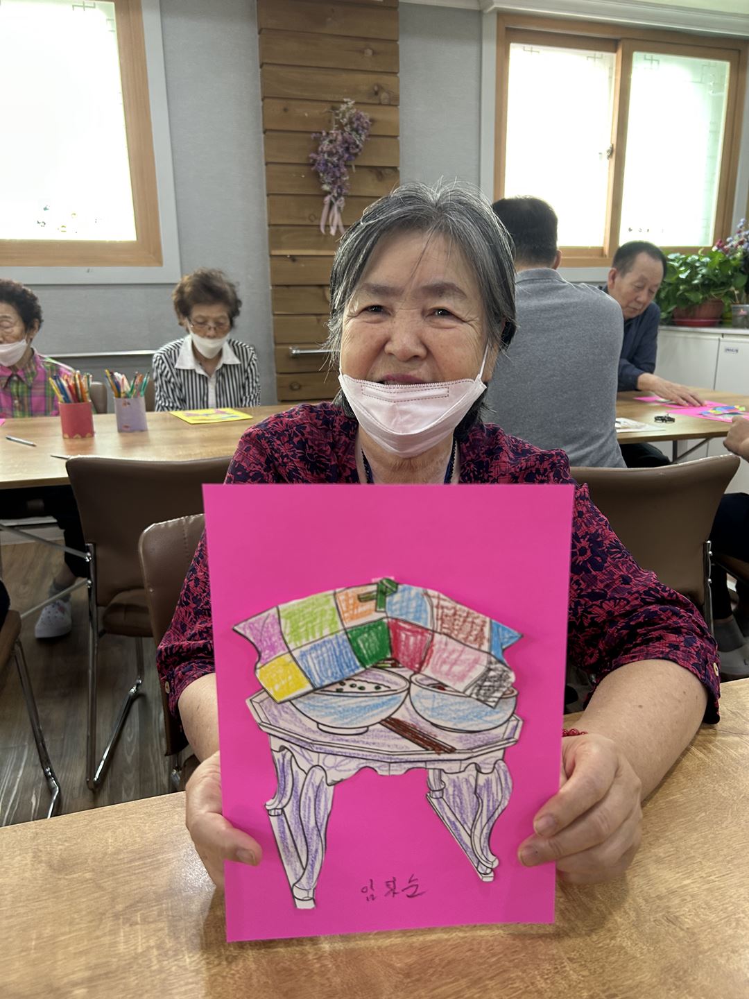 2025.09.26 창작활동교실 프로그램 최고관리자 0 339 09.26 15:19 오늘 주간보호에서는 어르신들과 함께 옛 시절을 회상하며 밥상 꾸미기 활동을 진행했습니다.강사님께서 나눠주신 도안을 색칠하고 알록달록한 밥상보를 붙여 입체적으로 완성해보았답니다!먹음직스러운 밥상을 바라보며, 어르신들께서는 조촐하지만 정겨웠던 지난날의 추억을 떠올리며 즐거워하셨어요~어르신들의 웃음과 이야기로 따뜻한 시간이 되었답니다 (ノ◕ヮ◕)ノ