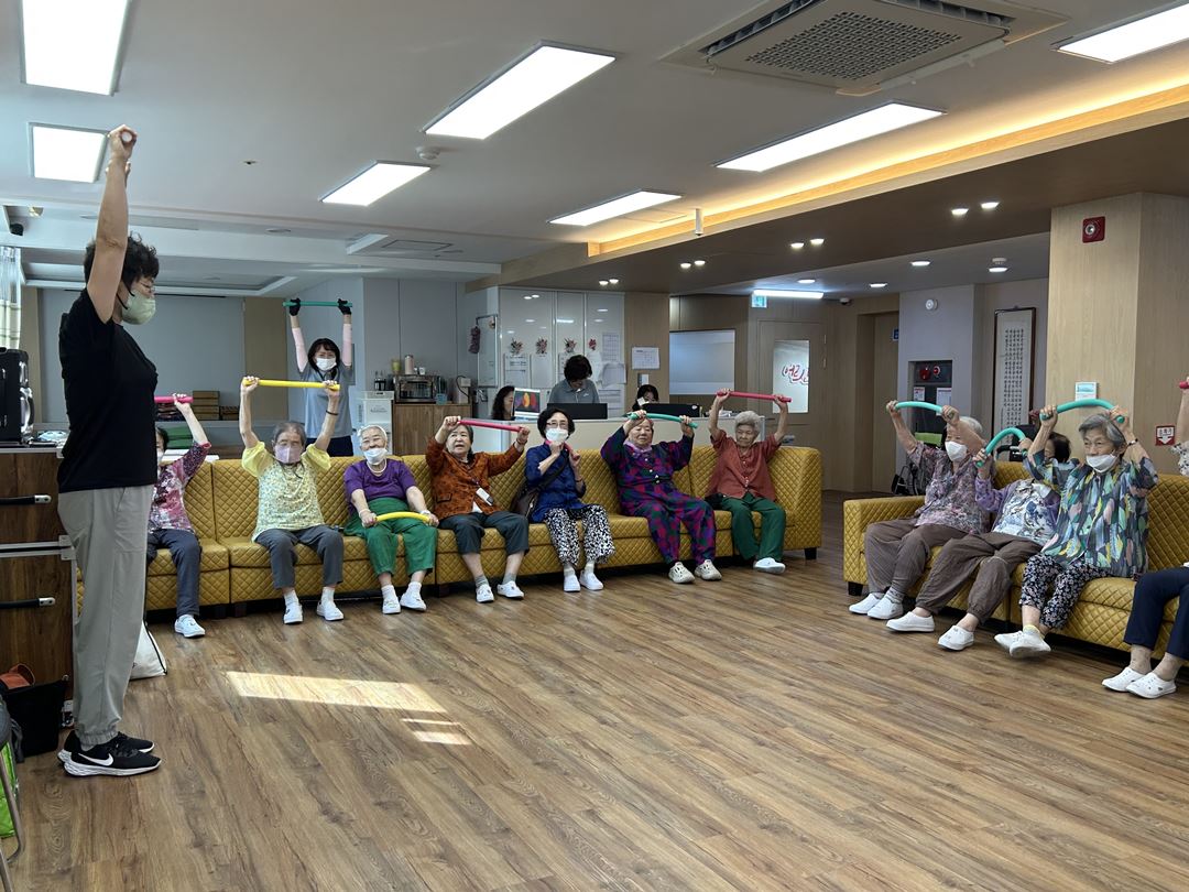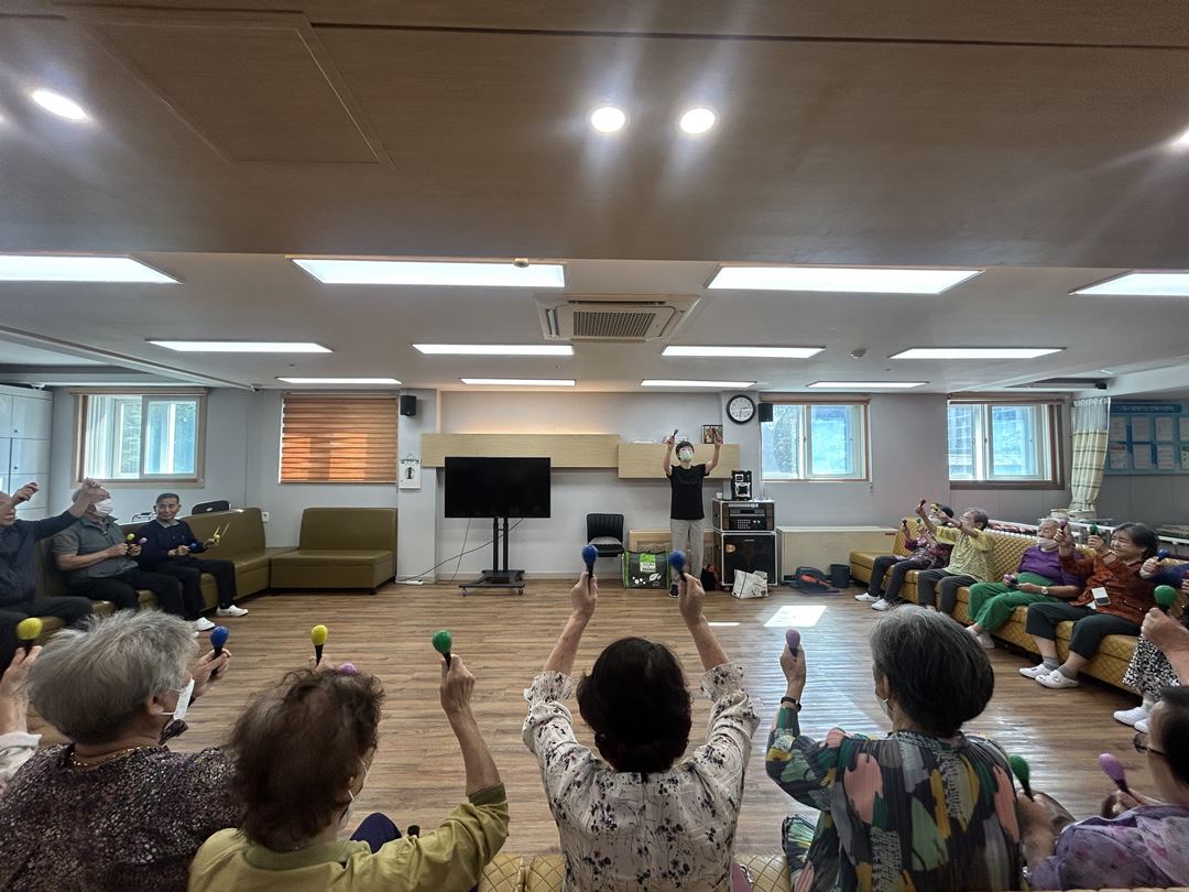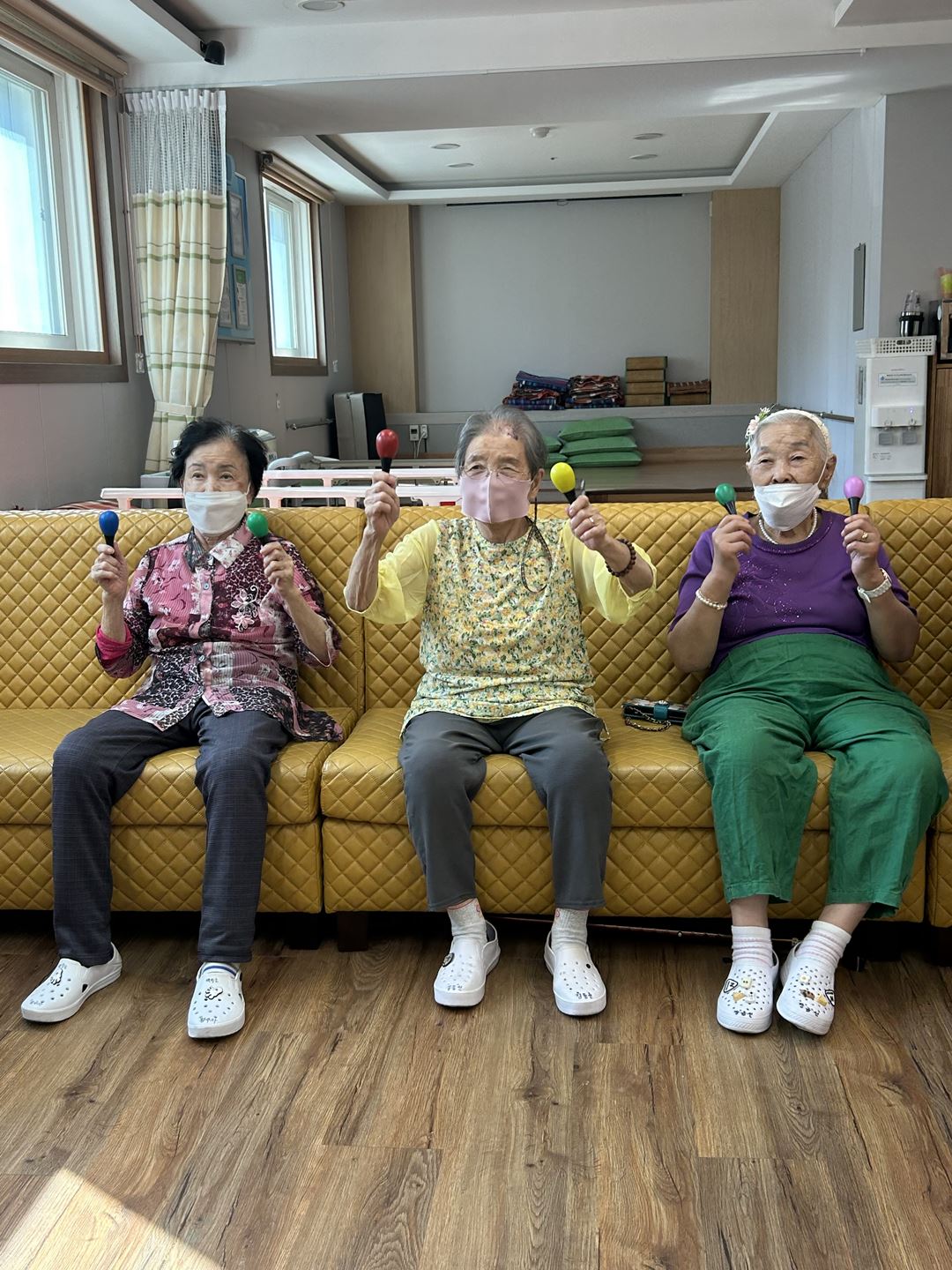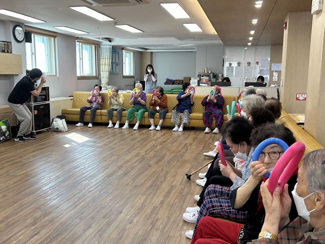 2025.10.01 실버레크레이션 프로그램 최고관리자 0 308 10.01 14:46 오늘 주간보호에서는 실버레크레이션 프로그램을 진행했어요.어르신들께서 음악에 맞춰 마라카스를 “찰랑찰랑~” 흔들기도 하고, 아쿠아누들을 활용해 팔을 쭉 뻗는 스트레칭도 했답니다.강사님께서 매주 다른 도구를 준비해 어르신들의 인지 향상과 건강을 돕고 있어요~나른한 오후가 음악과 웃음으로 가득 채워진 시간이었습니다. *^▽^*