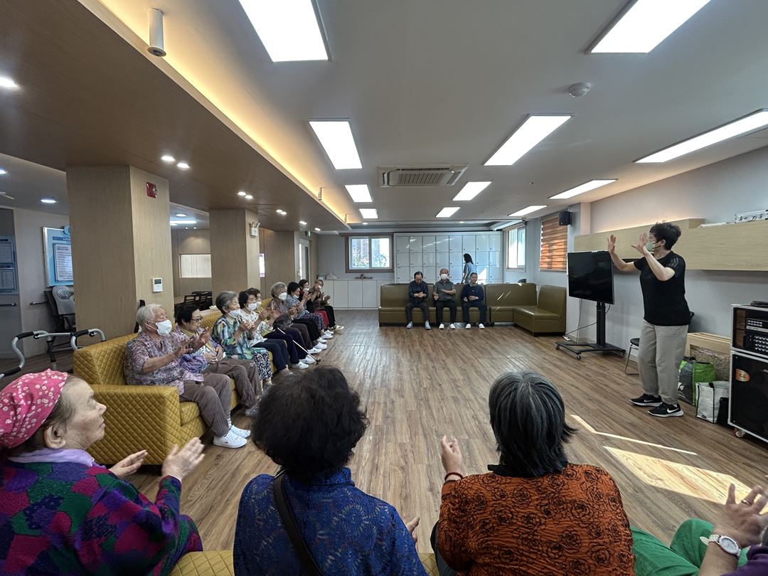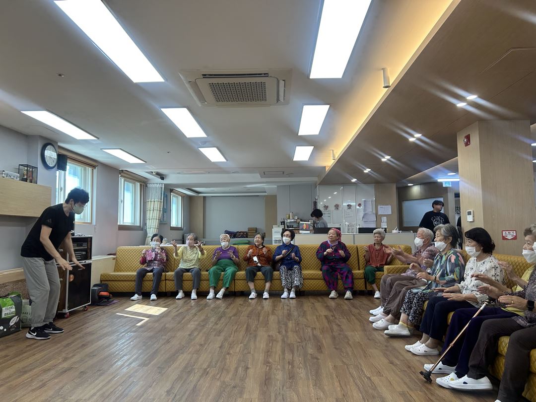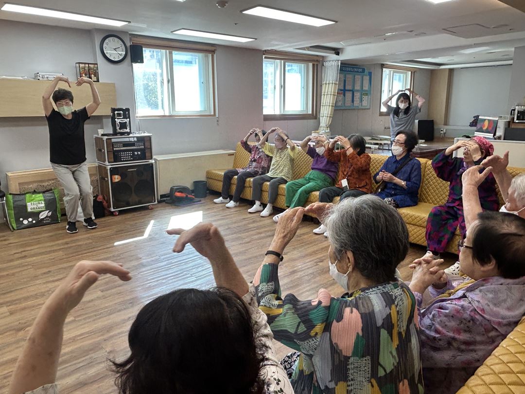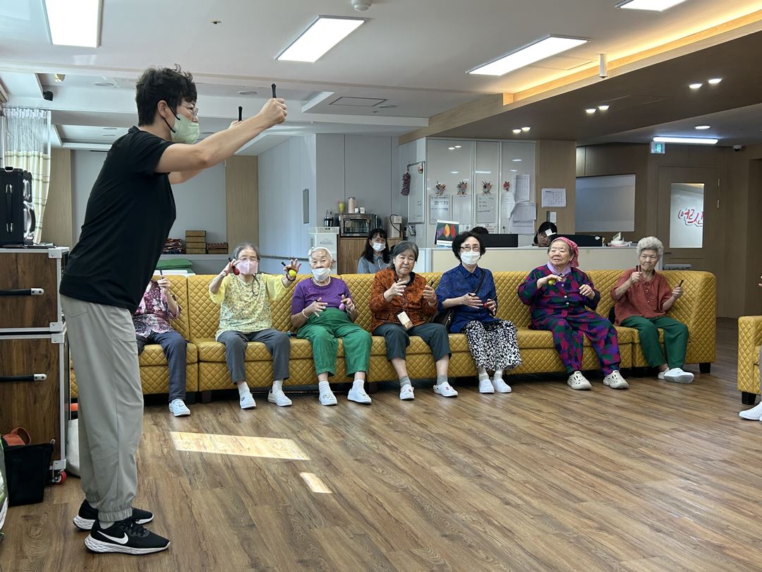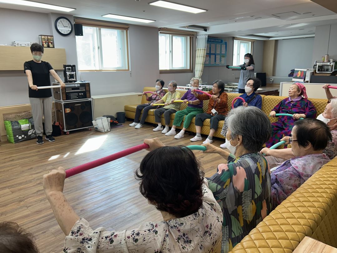 2025.10.01 실버레크레이션 프로그램 최고관리자 0 308 10.01 14:46 오늘 주간보호에서는 실버레크레이션 프로그램을 진행했어요.어르신들께서 음악에 맞춰 마라카스를 “찰랑찰랑~” 흔들기도 하고, 아쿠아누들을 활용해 팔을 쭉 뻗는 스트레칭도 했답니다.강사님께서 매주 다른 도구를 준비해 어르신들의 인지 향상과 건강을 돕고 있어요~나른한 오후가 음악과 웃음으로 가득 채워진 시간이었습니다. *^▽^*