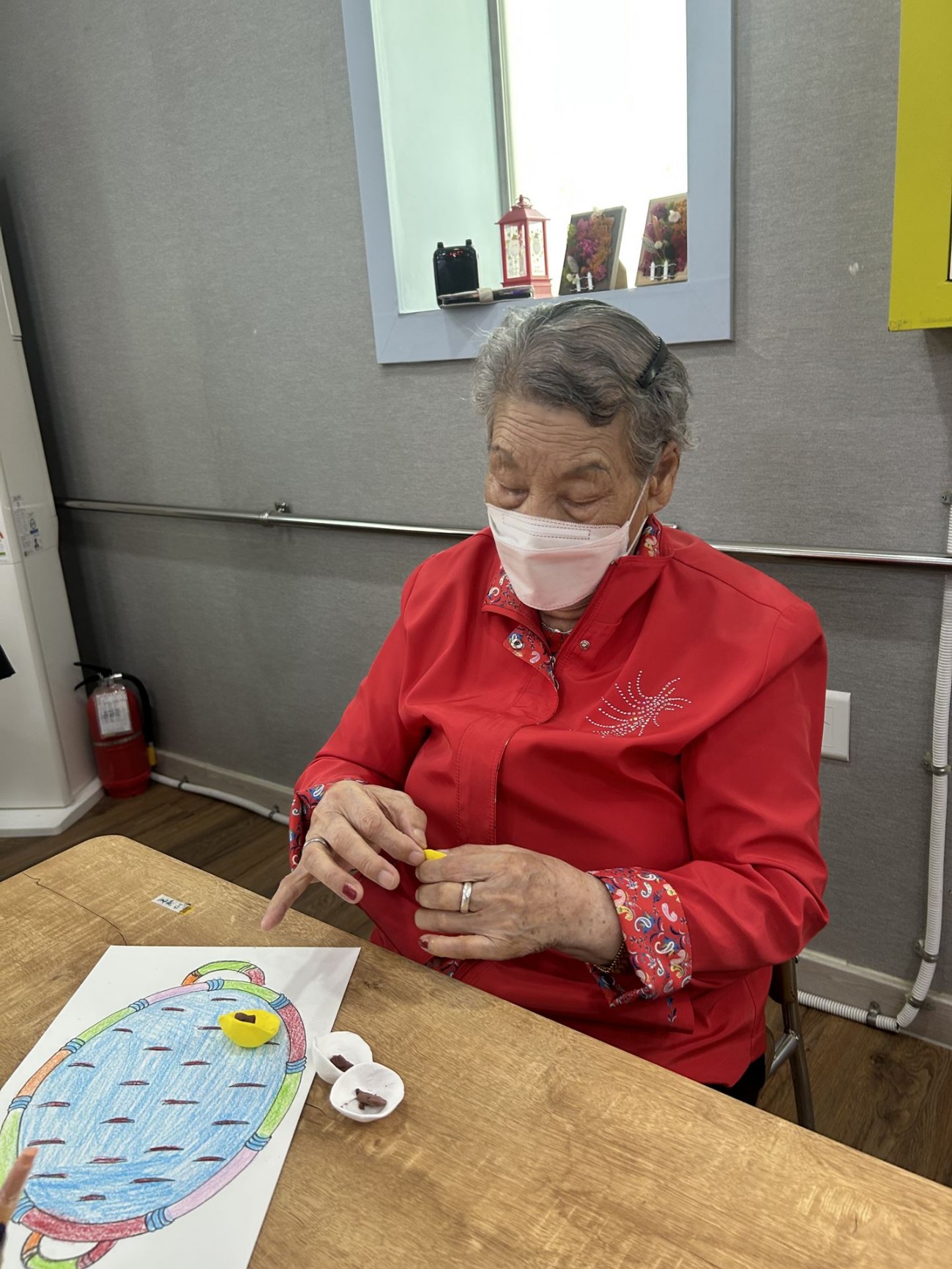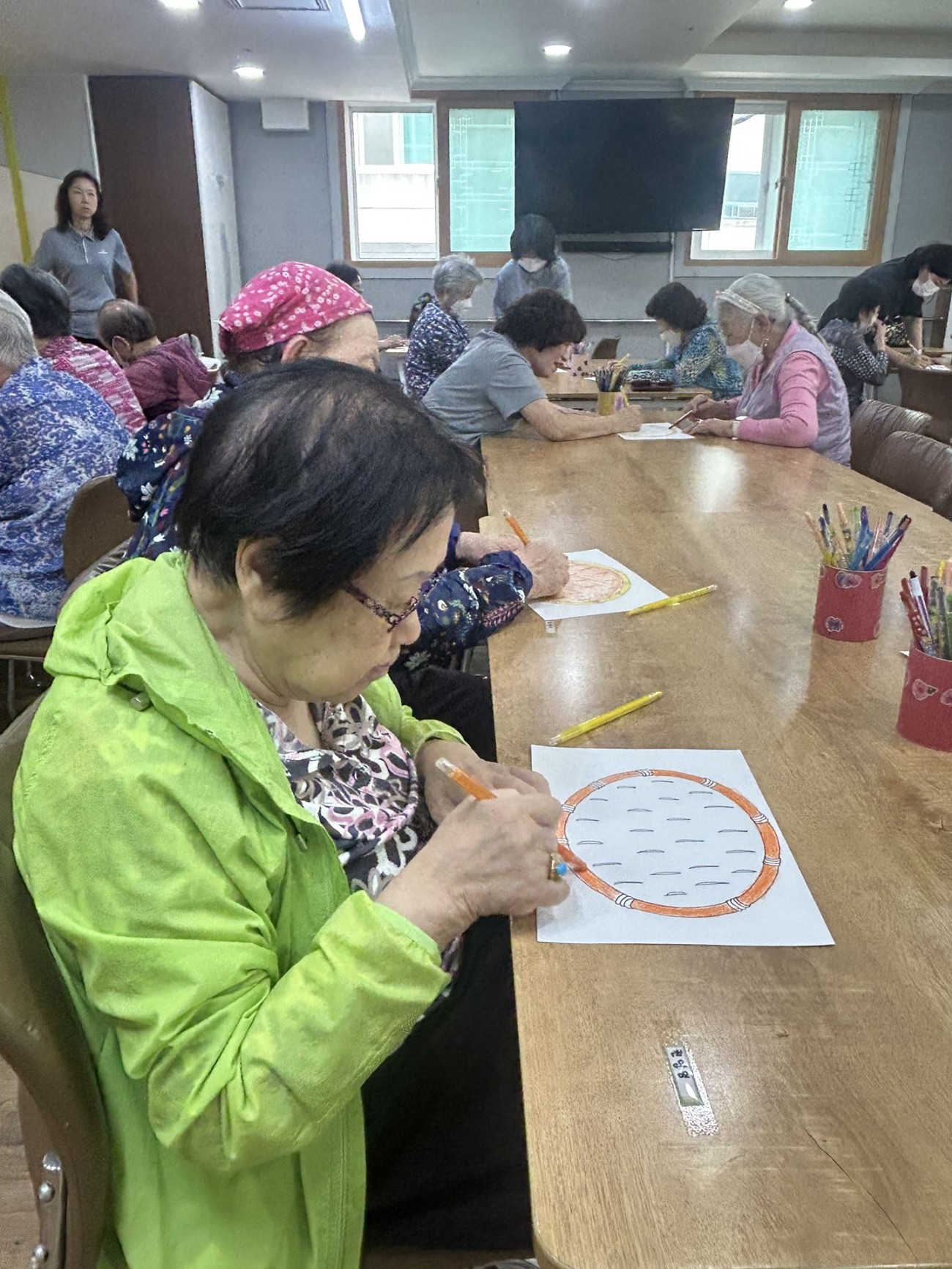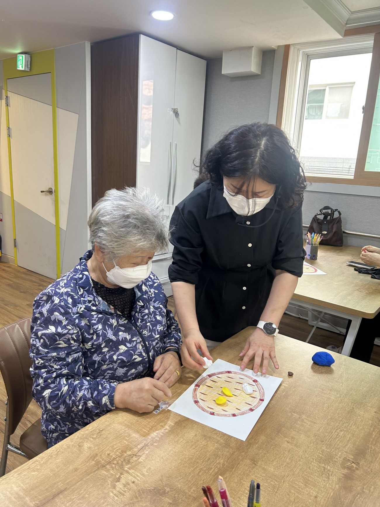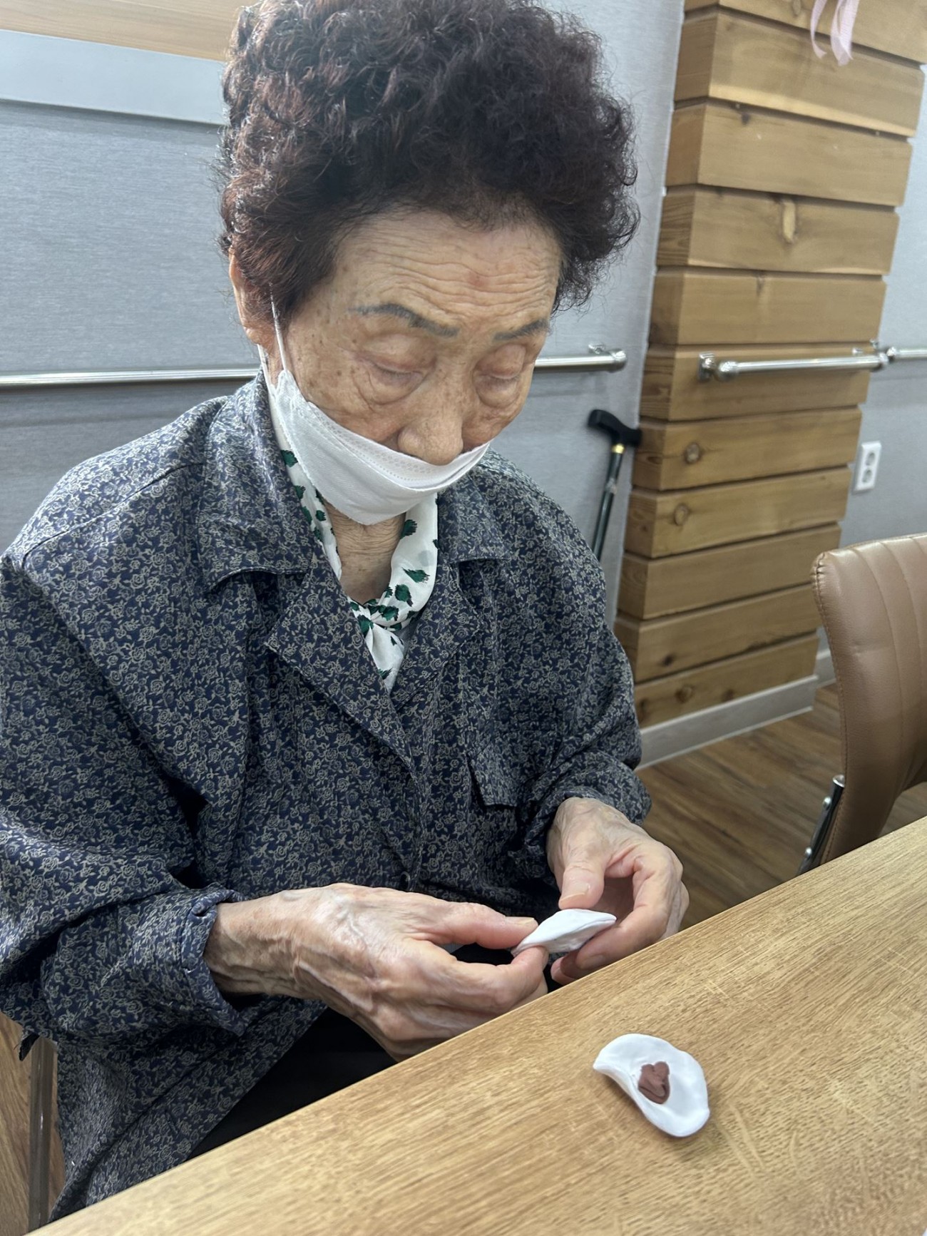 2025.10.10 창작활동교실 프로그램 최고관리자 0 238 10.13 10:43 오늘 주간보호에서는 창작활동으로 송편 빚기 프로그램을 진행했습니다^^ 말랑말랑한 클레이로 송편을 빚고, 예쁜 장식을 더한 뒤 채반 위에 올려 더욱 생생하게 표현했어요~ 옛날에 만두와 송편을 빚던 기억이 나신다며 익숙한 손놀림으로 정성껏 만드시는 모습이 인상적이었답니다. 어르신들과 함께 웃음꽃 피운 따뜻한 추석 맞이 시간이었어요❁´◡`❁