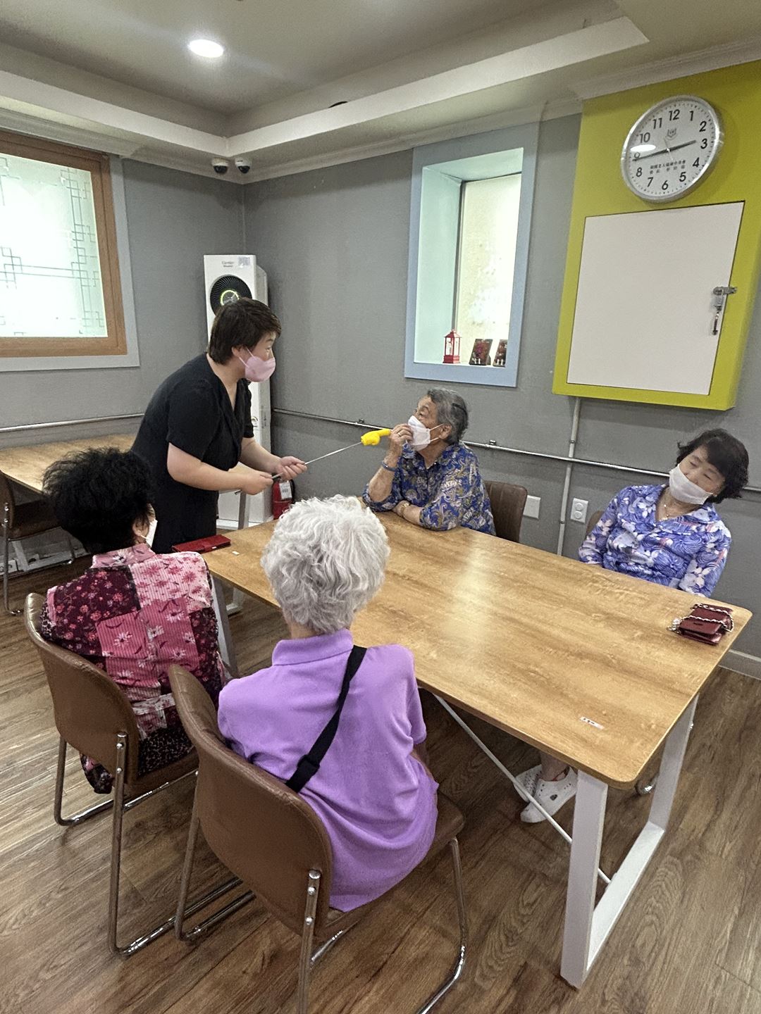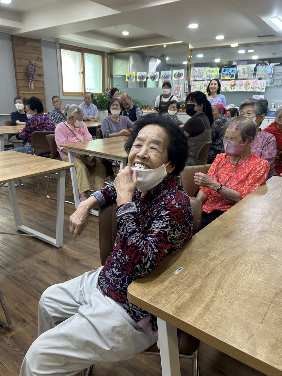 2025.09.08 회상교실 프로그램 최고관리자 0 422 09.08 14:53 오늘 주간보호에서는 회상교실 프로그램을 진행했습니다.똥글이 선생님의 스토리텔링을 들으며 어르신들께서는 깔깔 웃기도 하고, 이야기 속에 공감하며 몰입하셨어요~프로그램의 마지막에는 기억력 회복을 돕는 손가락 체조로 몸과 마음을 함께 움직이며 마무리했어요.활기찬 웃음과 집중 속에서 즐겁고 유익한 시간이 되었답니다. O(∩_∩)O