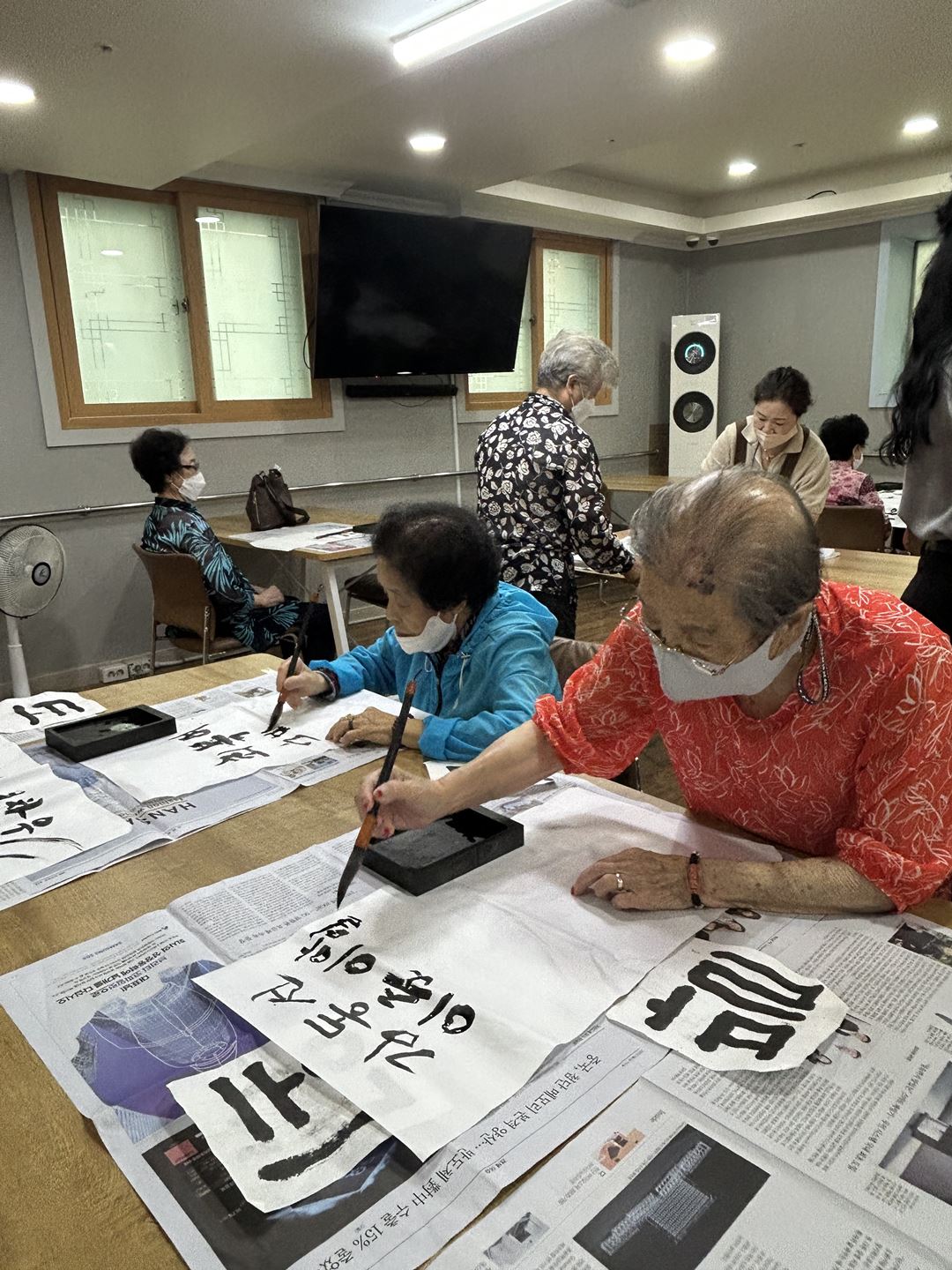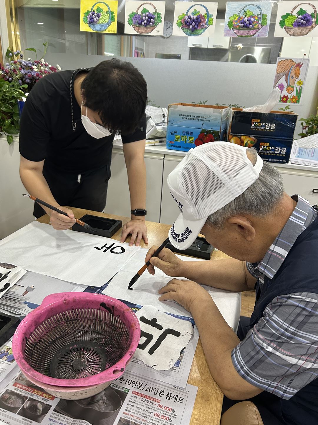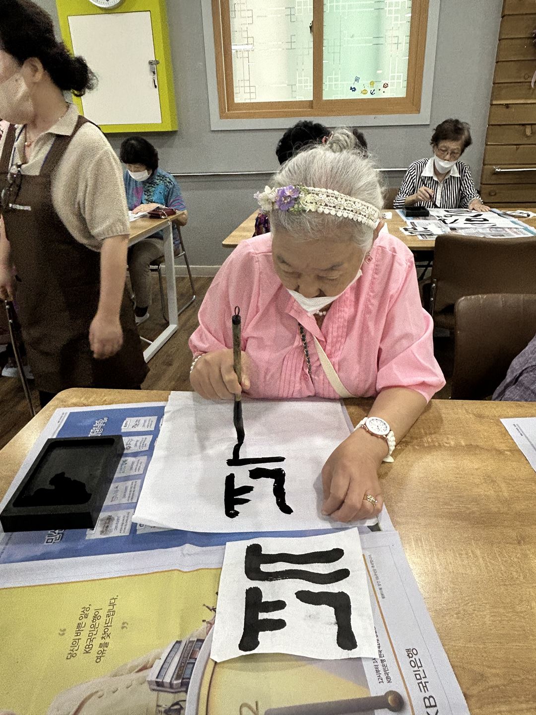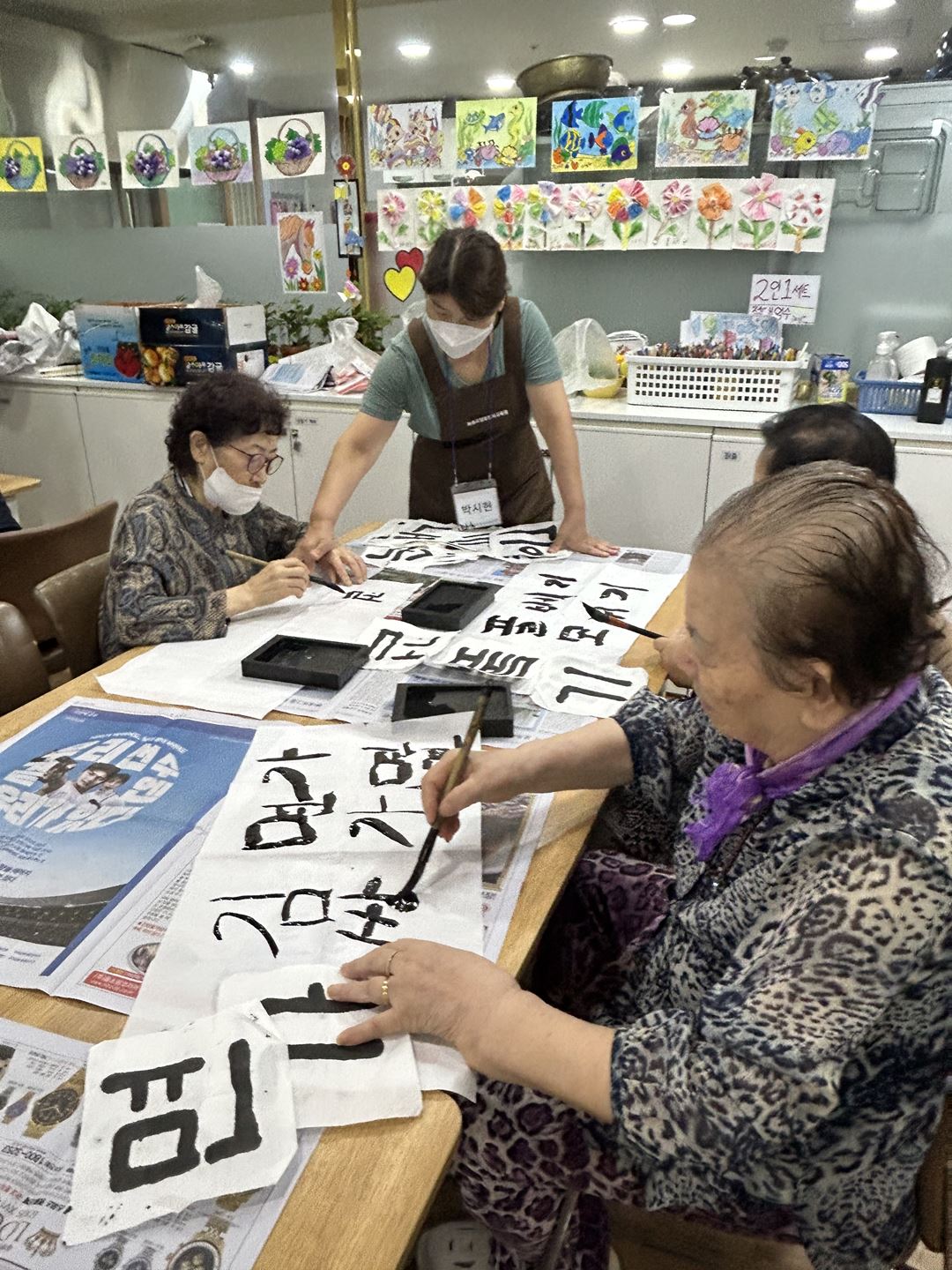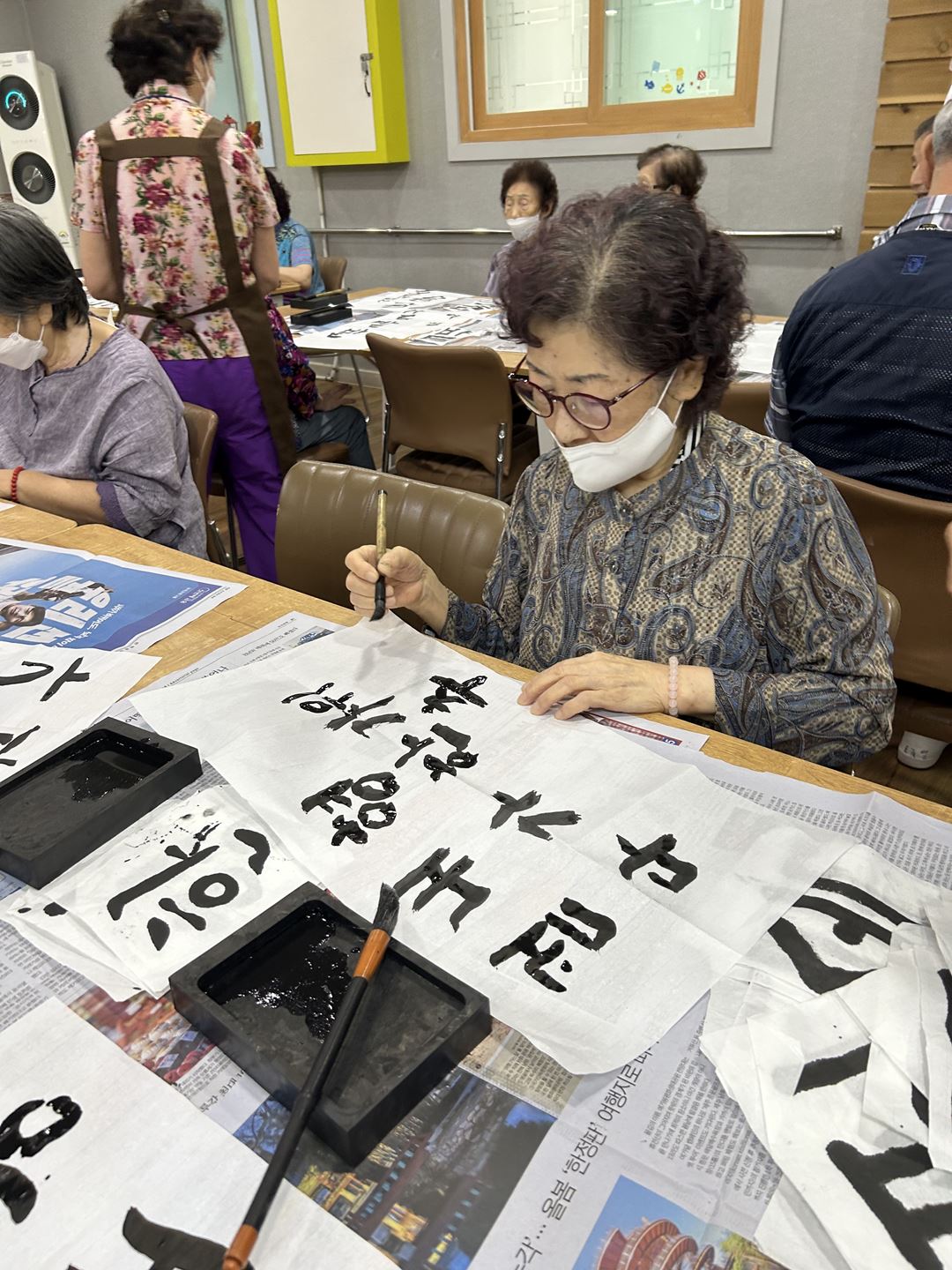 2025.09.09 서예교실 프로그램 최고관리자 0 353 09.09 15:32 오늘 주간보호에서는 서예교실 프로그램을 진행했습니다. 어르신들께서 한지와 붓, 벼루를 사용해 준비된 글자를 따라 쓰거나, 각자 원하는 문구를 자유롭게 적어보셨어요~ 붓글씨에 익숙하신 어르신들은 능숙한 솜씨를 뽐내셨고, 처음 시도하신 분들도 집중하며 정성껏 작품을 완성하셨어요^^ 진지하게 붓을 움직이시는 모습 속에서 뜻 깊고 흐뭇한 시간이 되었답니다! (❁´◡`❁)