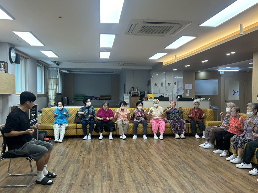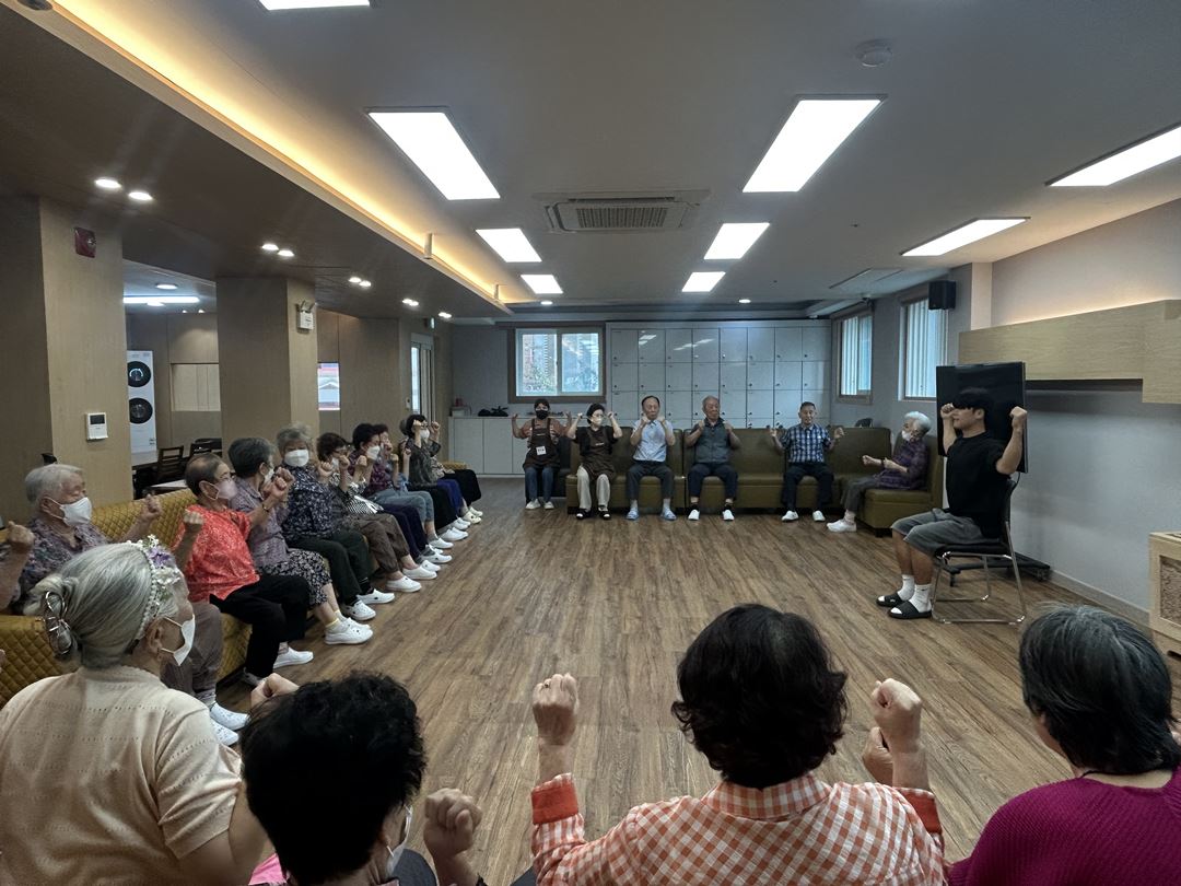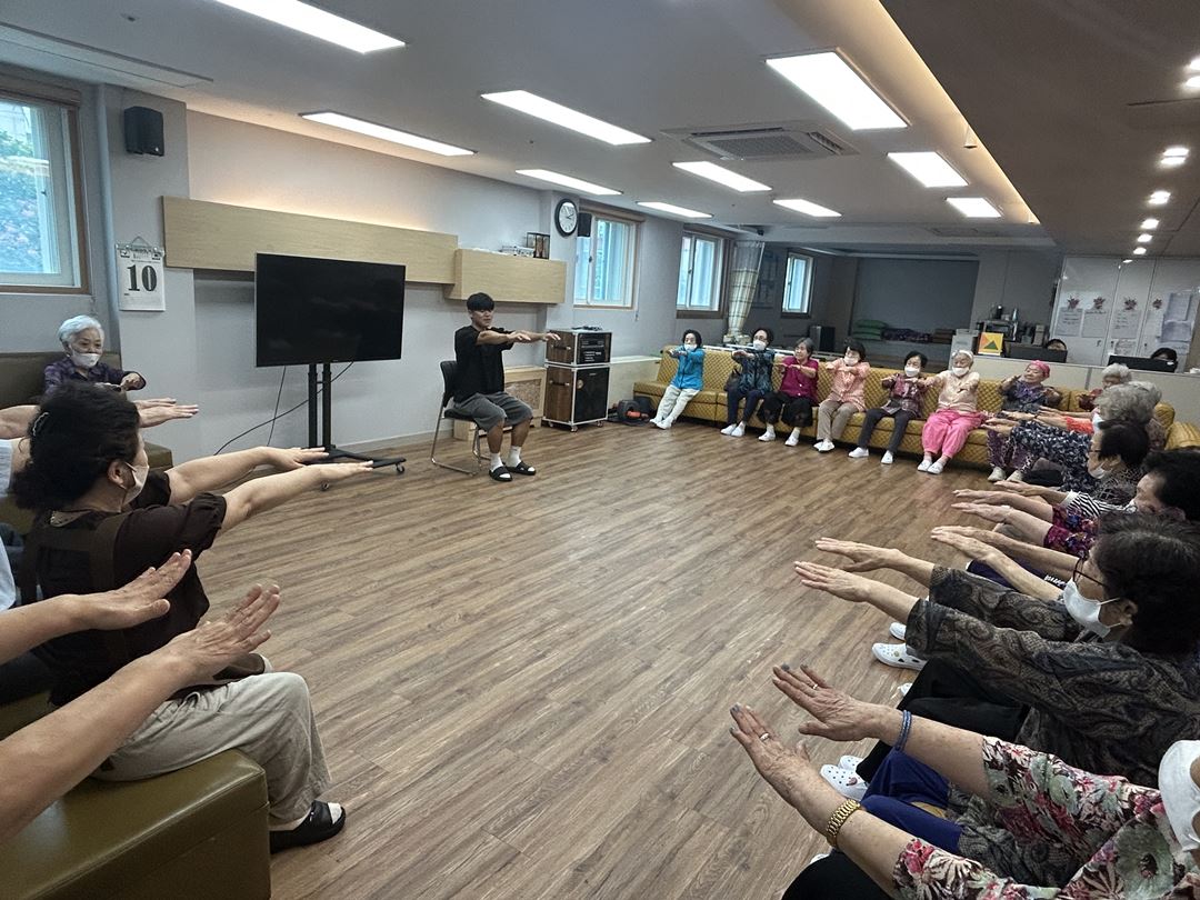 2025.09.10 인지자극체조 프로그램 최고관리자 0 369 09.10 15:20 오늘 주간보호에서는 강사님과 함께하는 인지자극 체조 프로그램을 진행했습니다.대구샘 주간보호에서는 어르신들의 활기찬 일상을 위해 매일 오전 30분 건강 체조와 주 2회 이상 체조 프로그램을 꾸준히 운영하고 있어요~강사님을 따라 앉은 자리에서 팔, 다리, 어깨를 쭉쭉 스트레칭하며 몸을 풀고, 마음까지 힐링하는 시간을 가졌습니다. 운동 후 한결 밝아진 표정에서 어르신들의 건강한 에너지가 느껴졌답니다! (●'◡'●)