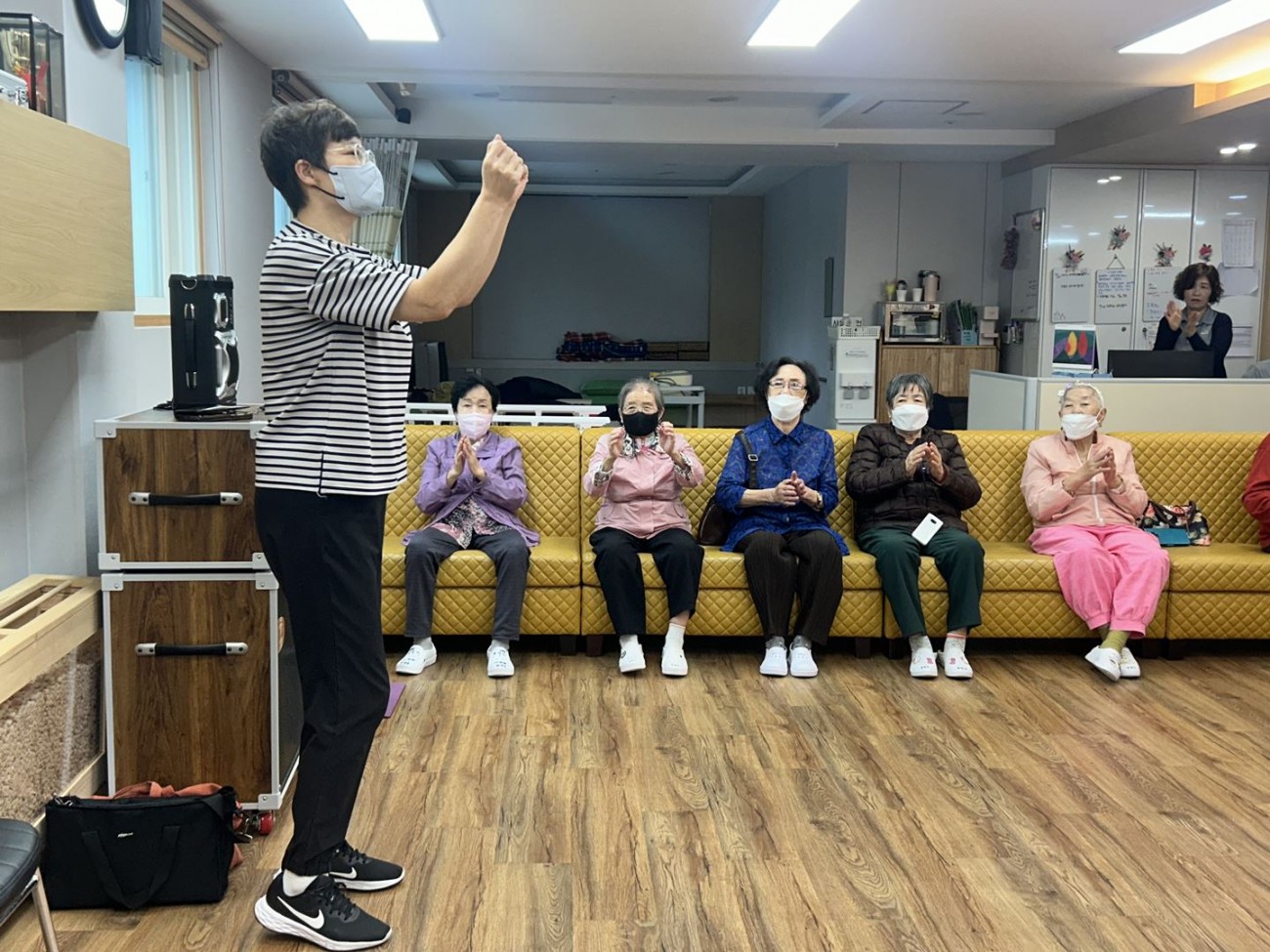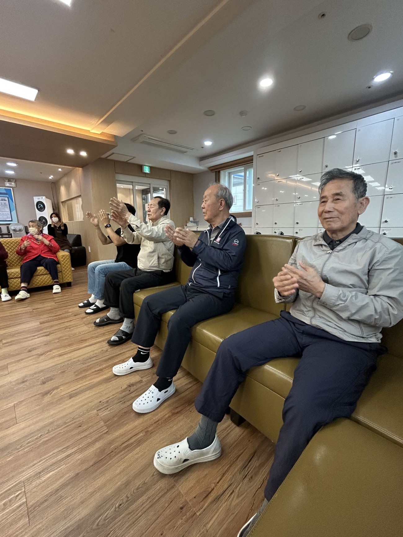 2025.10.22 실버레크레이션 프로그램 최고관리자 0 217 10.22 14:22 오늘 주간보호에서는 실버레크레이션 프로그램을 진행했습니다.익숙한 옛날 음악이 흘러나오자 어르신들께서 자연스럽게 율동을 하시며 활기를 되찾으셨어요!노래에 맞춰 몸을 움직이시면서 혈액순환이 촉진되어 면역력 강화에도 도움이 되었답니다~음악을 통해 뇌가 자극되고, 스트레스가 해소되어 정서적으로 한결 안정된 모습이었어요^^움직임과 노래가 어우러진 이번 시간은 어르신들의 기초체력 향상에 소중한 시간이 되었습니다. ●'◡'●