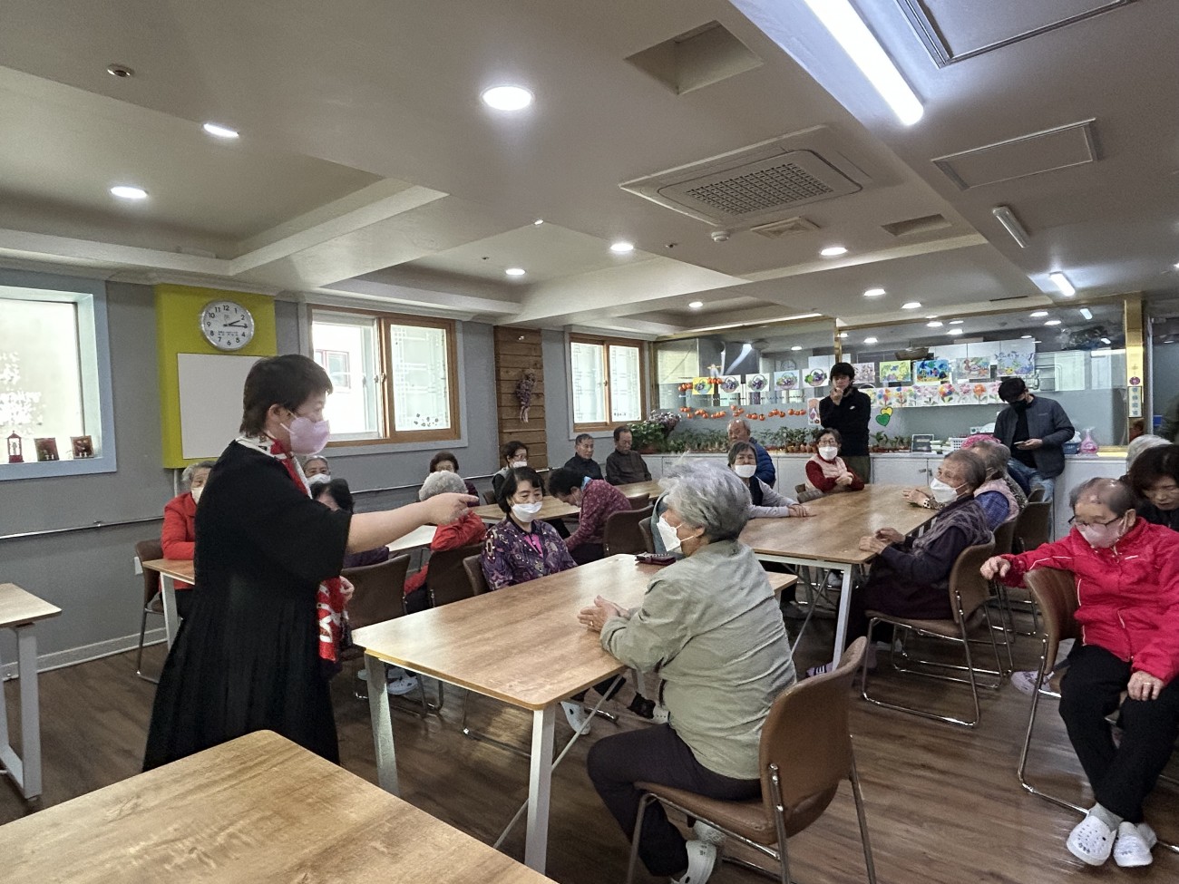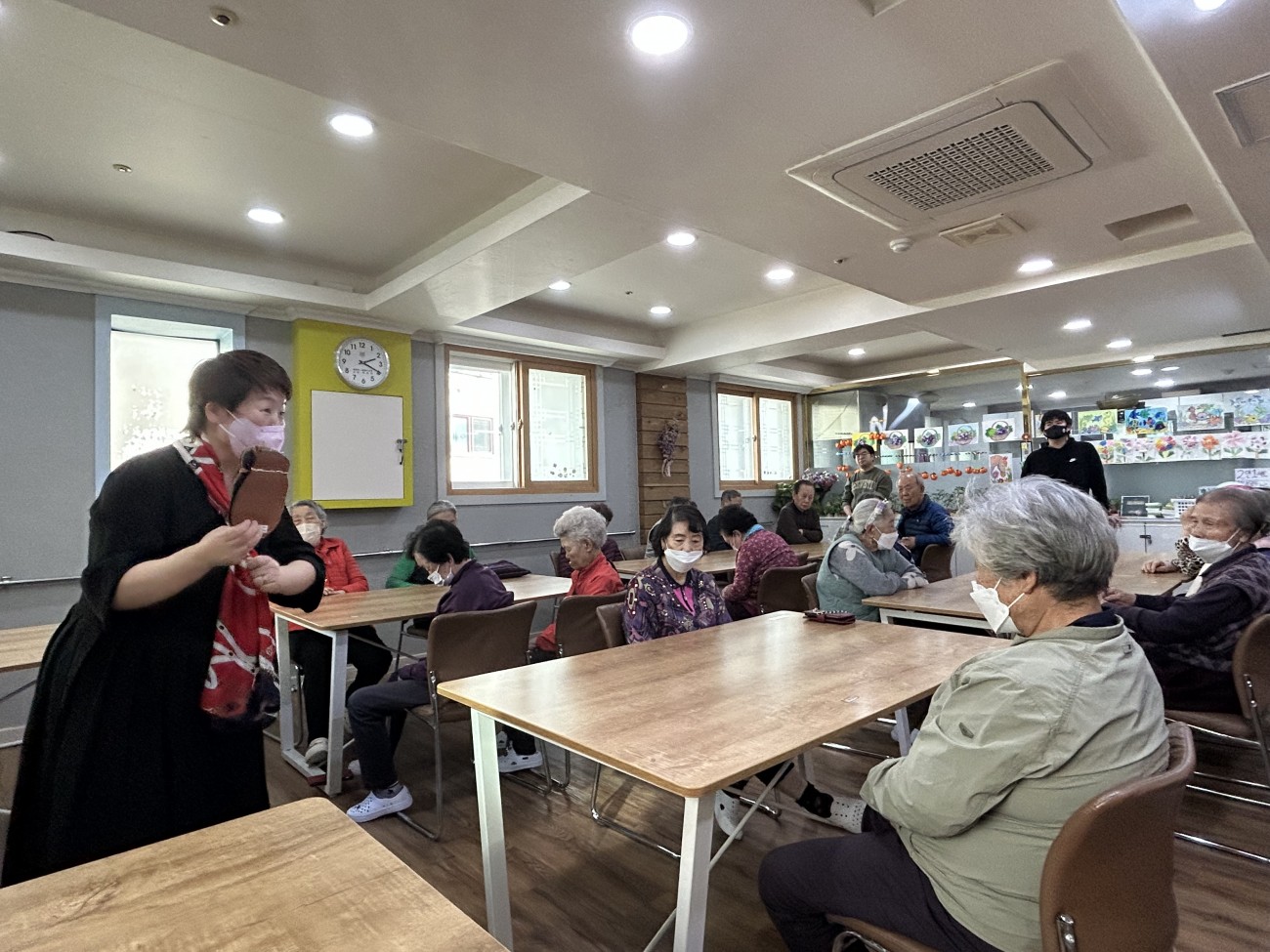 2025.11.10 창작활동교실 최고관리자 0 101 11.10 14:42 오늘 주간보호에서는 회상교실을 진행했습니다.이야기의 주제는 ‘요술 항아리 속에 빠진 원님’으로, 흥미로운 전개에 어르신들께서 눈을 반짝이셨답니다~강사님의 풍부한 표현력과 생생한 연기에 어르신들이 웃으며 공감하셨어요.권선징악의 교훈적인 내용이었지만 지루할 틈 없이 즐겁게 감상하셨답니다.