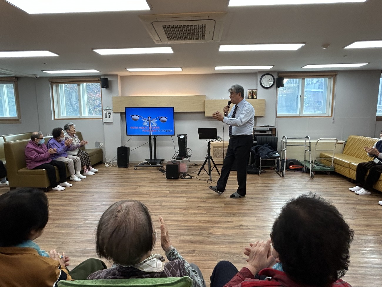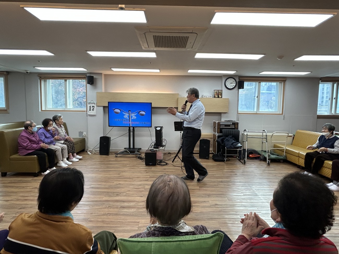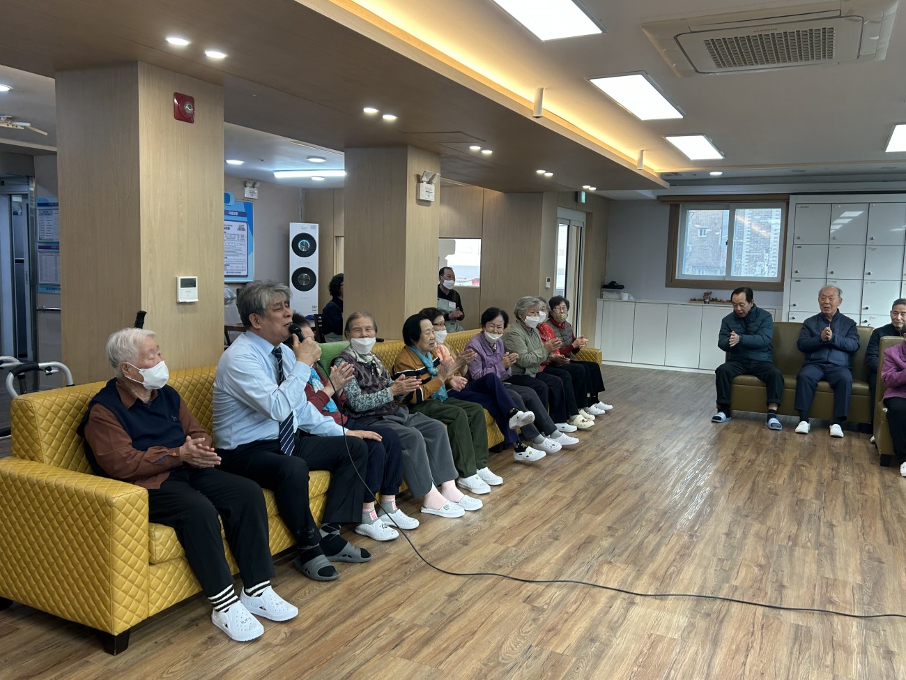 2025.11.17 힐링음악교실 프로그램 최고관리자 0 104 11.17 15:26 오늘 주간보호에서는 힐링음악교실 프로그램이 진행되었습니다.남자 강사님께서 멋진 목소리와 무대매너로 노래를 들려주셔서 어르신들께서 무척 즐거워하셨어요^^익숙한 옛 가요가 흘러나오자 자연스레 박수도 치고, 함께 따라 부르며 분위기가 한껏 따뜻해졌답니다~정겨운 음악 속에서 어르신들의 얼굴에 미소가 가득했던 행복한 시간이었습니다!
