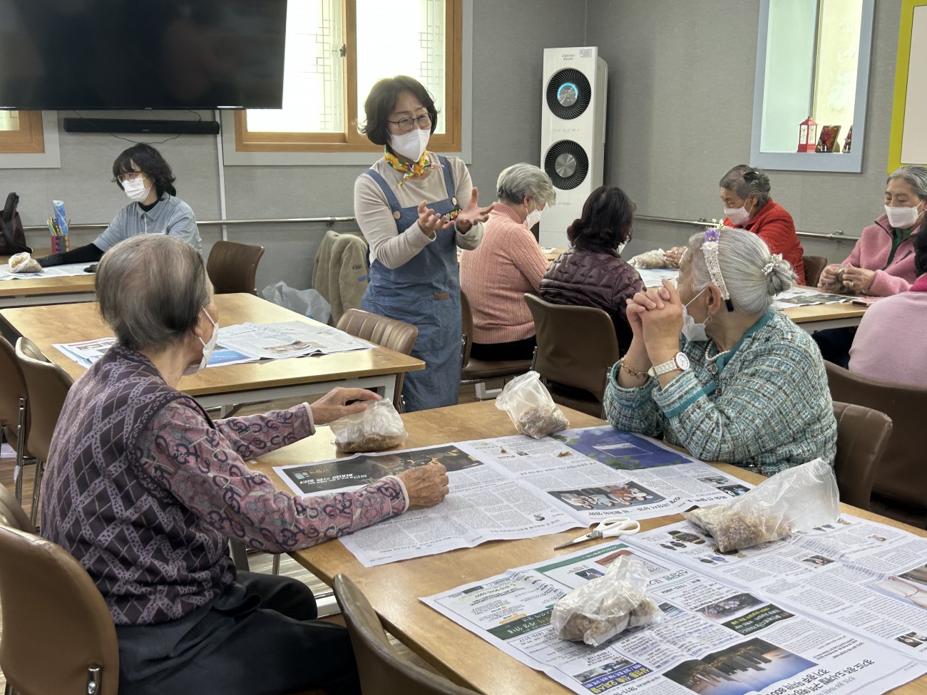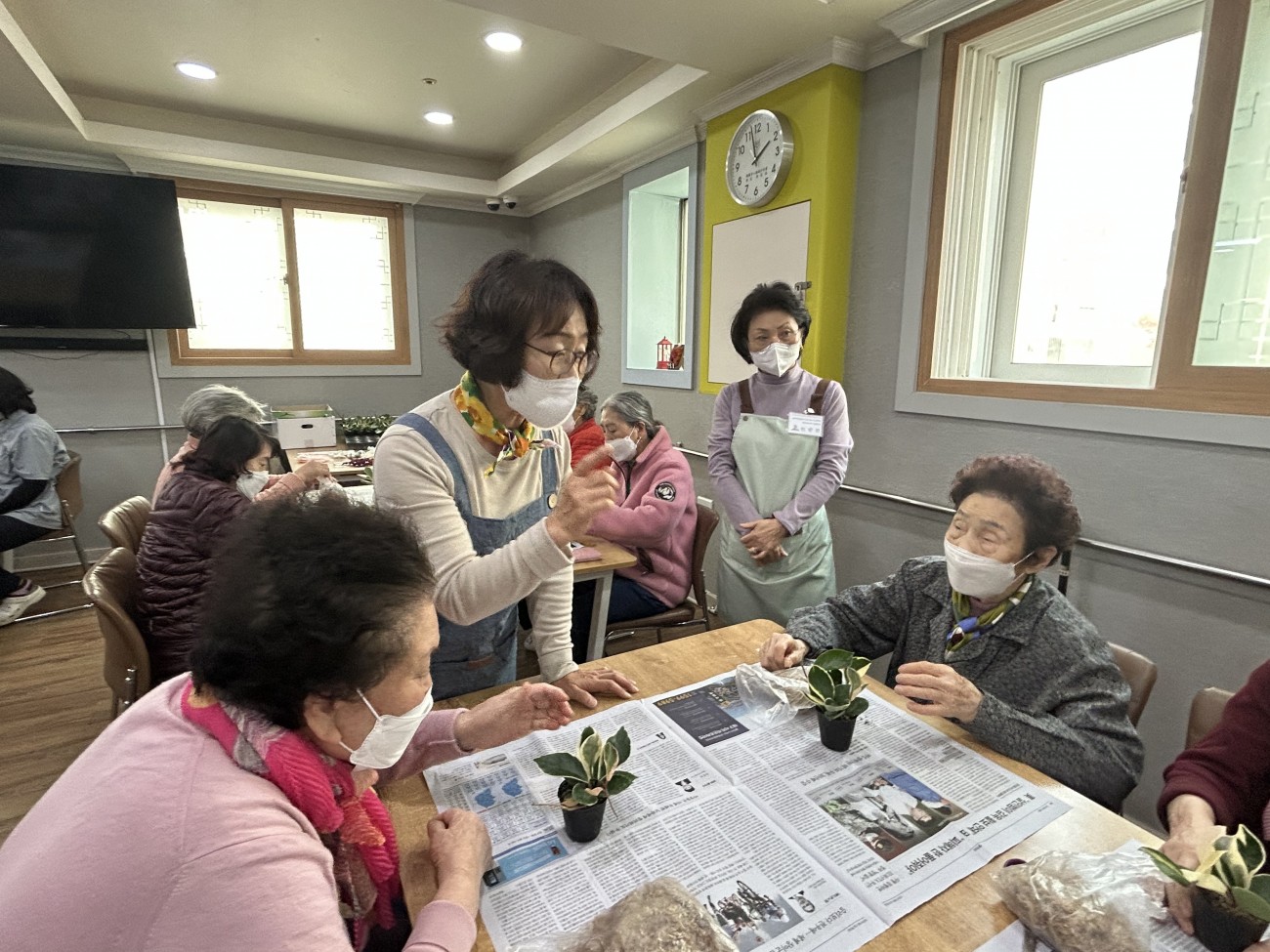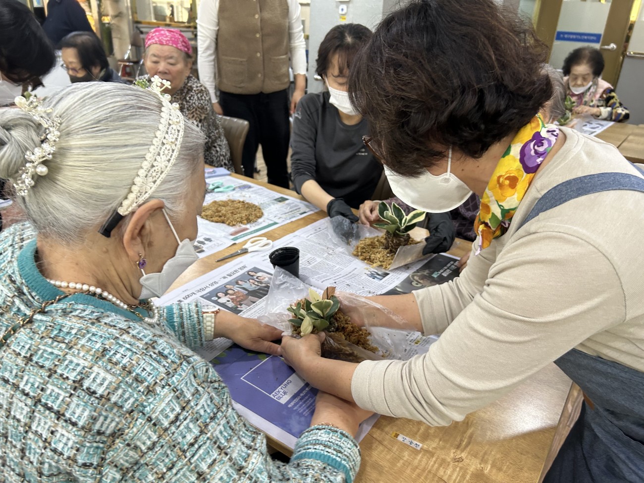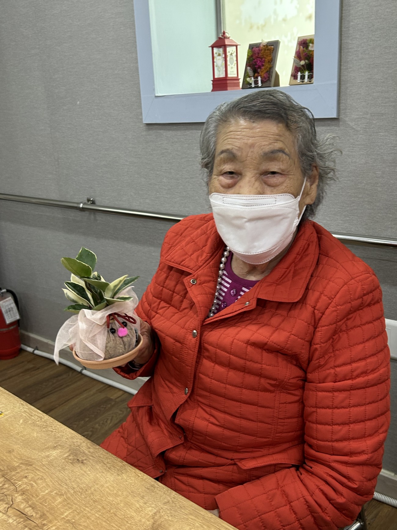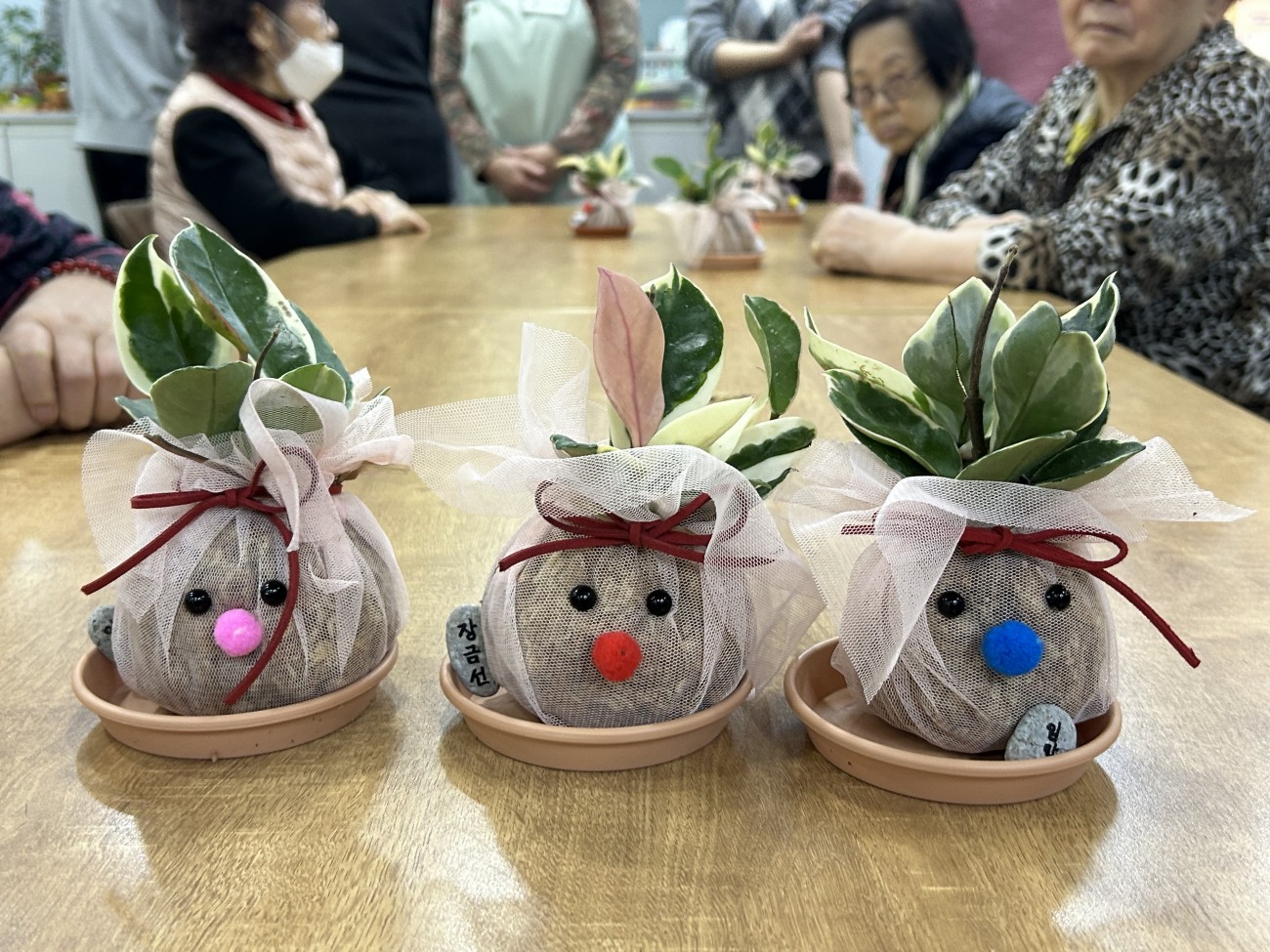 2025.11.25 원예교실 프로그램 최고관리자 0 75 11.25 14:55 오늘 주간보호에서는 원예교실 프로그램을 진행했습니다. 호야라는 덩굴식물을 예쁜 천으로 감싸 리본을 묶고, 눈·코 장식을 더해 생동감 있는 얼굴 모양으로 완성했어요.식물을 집에 가져가시도록 포장해드리면서, 집에서 호야를 키우실 수 있는 방법에 대해 안내해드렸어요~어르신들은 선물처럼 포장된 호야를 보며 무척 기뻐하셨답니다!
