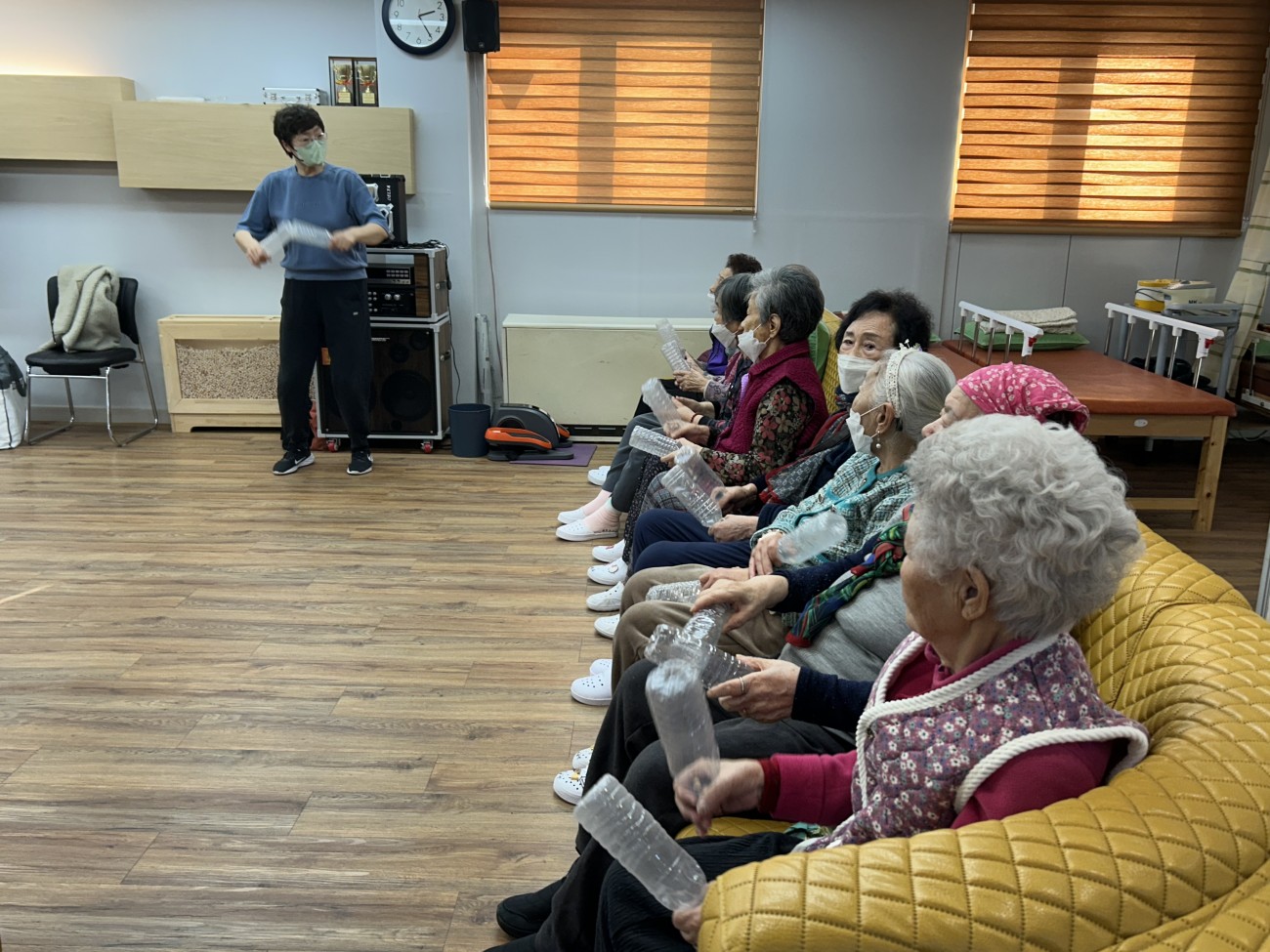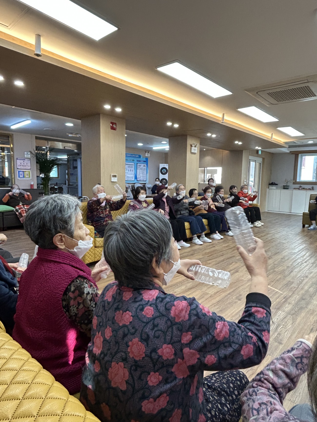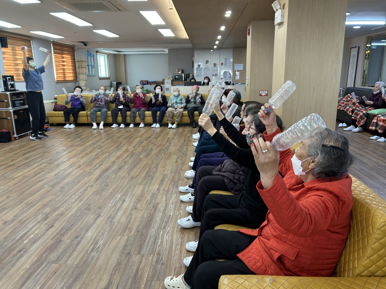 2025.11.26 실버레크레이션 프로그램 최고관리자 0 104 11.26 15:05 오늘 주간보호에서는 실버레크레이션 프로그램을 진행했습니다.페트병을 활용해 음악에 맞춰 율동을 해보며 어르신들이 활기찬 시간을 보내셨어요~익숙한 노래가 나오자 자연스럽게 얼굴이 밝아지시고, 손과 팔을 움직이며 가벼운 운동 효과도 얻을 수 있었습니다.모두 함께 리듬을 타며 즐기는 모습이 참 따뜻하고 활기찬 시간이었답니다 ◠‿◠