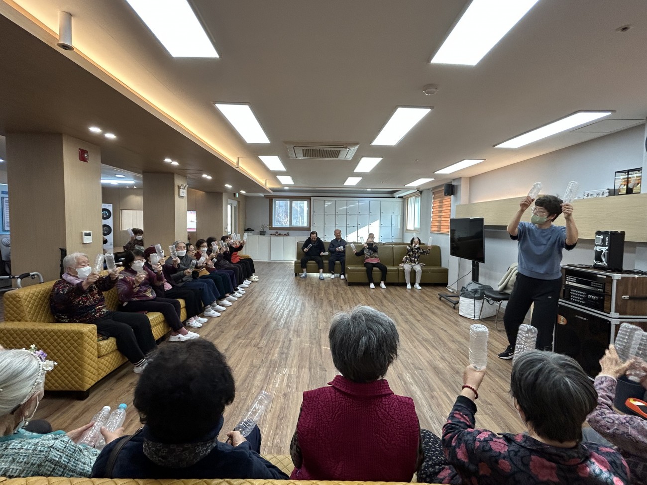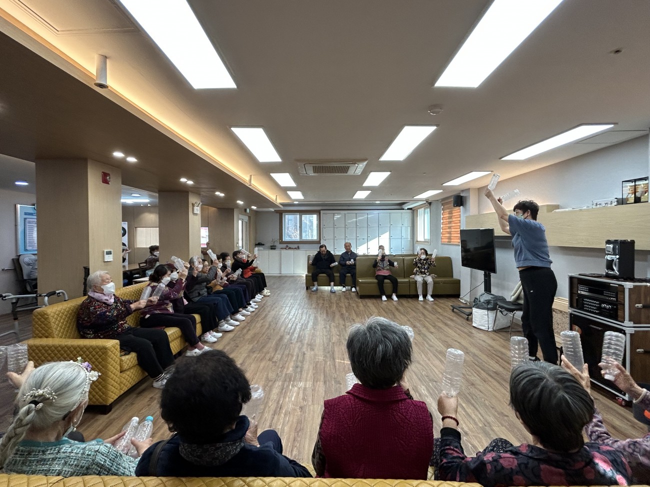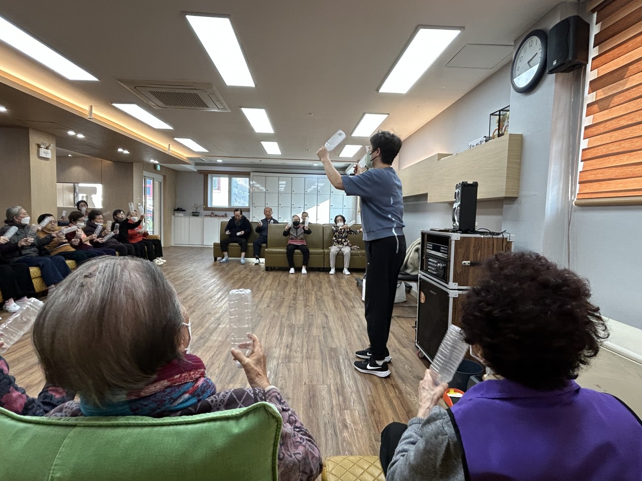 2025.11.26 실버레크레이션 프로그램 최고관리자 0 104 11.26 15:05 오늘 주간보호에서는 실버레크레이션 프로그램을 진행했습니다.페트병을 활용해 음악에 맞춰 율동을 해보며 어르신들이 활기찬 시간을 보내셨어요~익숙한 노래가 나오자 자연스럽게 얼굴이 밝아지시고, 손과 팔을 움직이며 가벼운 운동 효과도 얻을 수 있었습니다.모두 함께 리듬을 타며 즐기는 모습이 참 따뜻하고 활기찬 시간이었답니다 ◠‿◠
