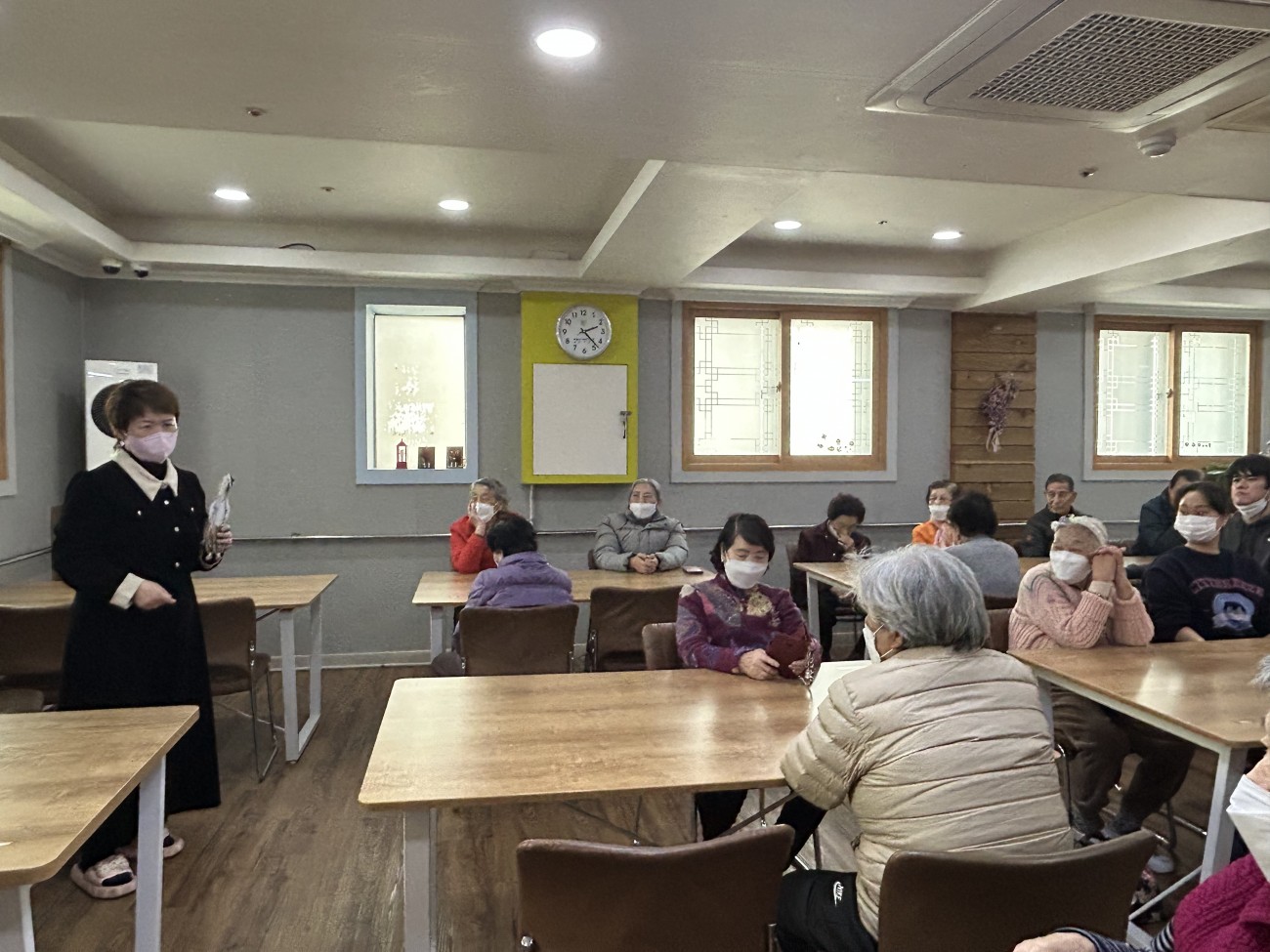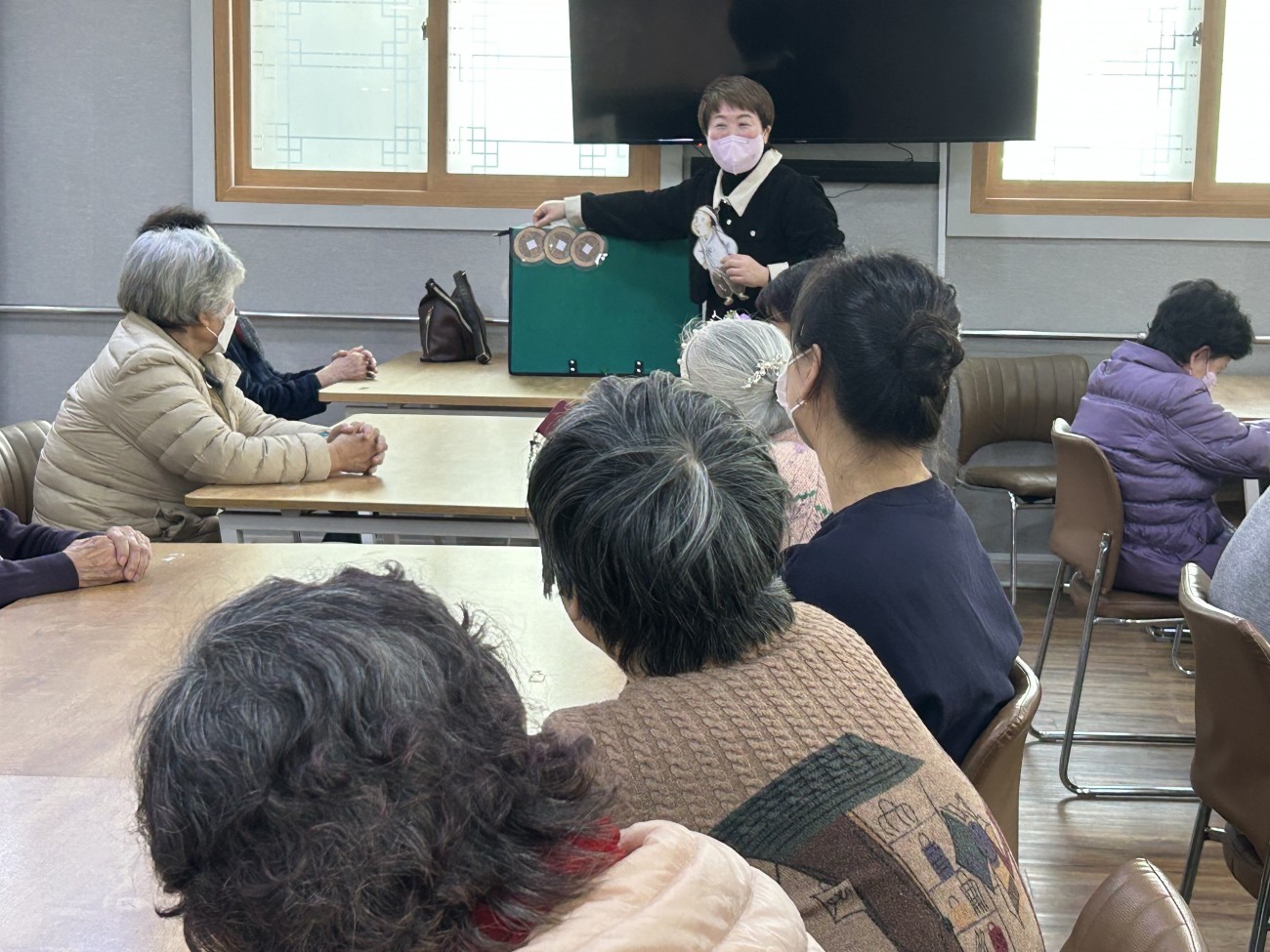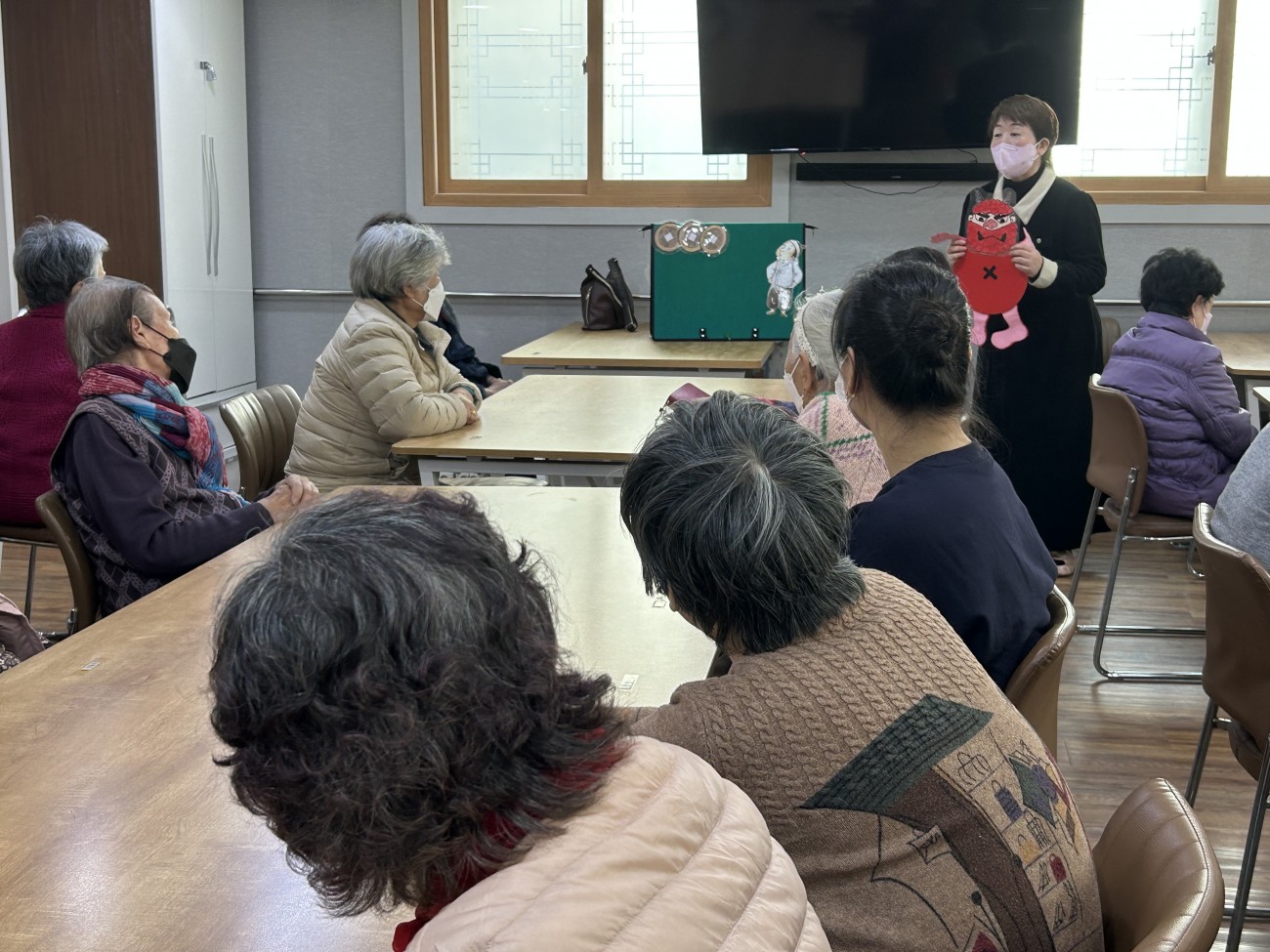2025.12.01 회상교실 프로그램 최고관리자 0 42 12.01 14:33 오늘 주간보호에서는 회상교실 프로그램을 진행했습니다.선생님께서 ‘도깨비와 나그네’ 이야기를 들려주시며 어르신들과 옛 기억을 회상하는 시간을 가졌는데요.졸린 오후임에도 불구하고 어르신들께서는 눈을 초롱초롱하게 뜨시며 이야기에 집중해주시고 적극적으로 참여해주셨답니다~따뜻한 공감과 웃음이 오가는 즐거운 시간이었습니다^^