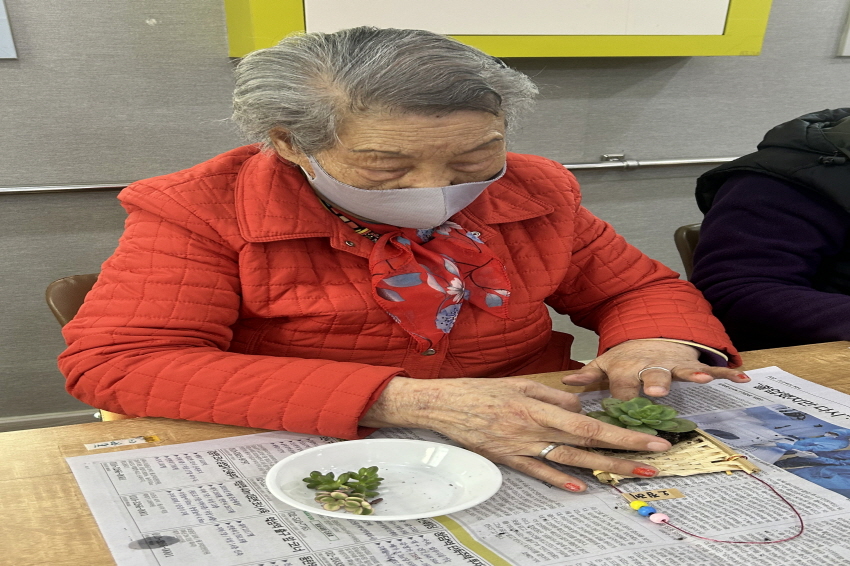 2025.01.06 원예교실 프로그램 최고관리자 0 32 01.06 15:28 오늘 주간보호센터에서는 원예교실 프로그램을 진행했습니다.어르신들께서 다육이를 직접 화분에 옮겨 심으며 정성을 담아 꾸며보는 시간을 가졌습니다.흙을 만지고 식물을 돌보는 과정 속에서 자연의 온기를 느끼며 마음의 안정을 찾으셨습니다.완성된 다육이는 멋스러운 인테리어 소품이 되어 공간을 한층 더 따뜻하게 밝혀주었습니다.