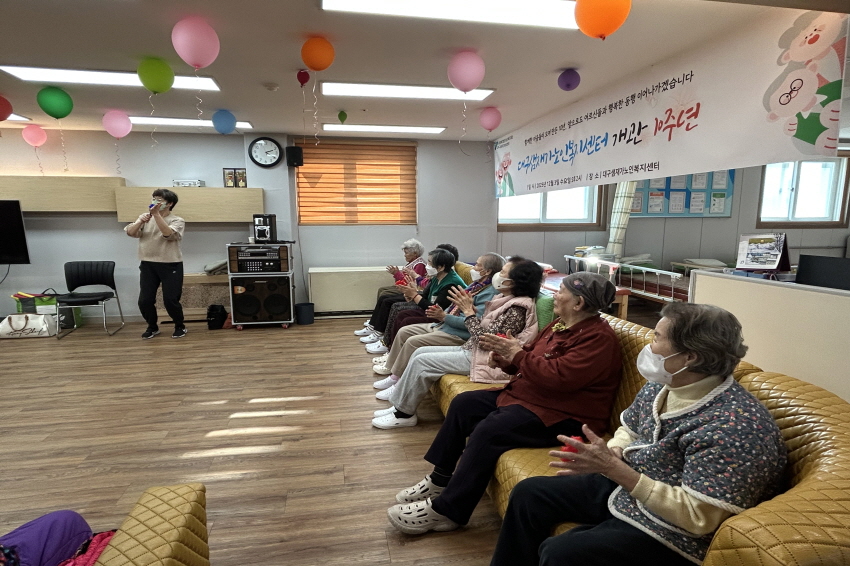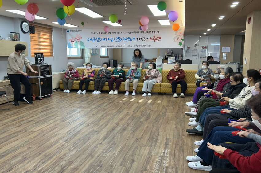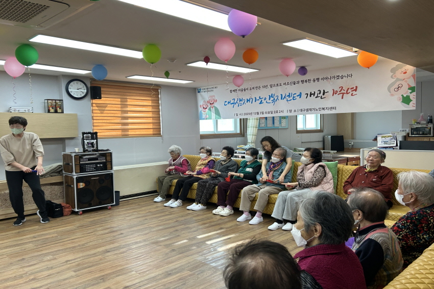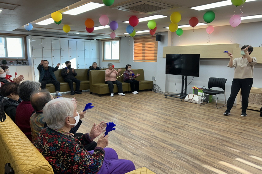 2025.01.07 실버레크레이션 프로그램 최고관리자 0 22 01.07 16:13 오늘 주간보호센터에서는 실버레크레이션 프로그램을 진행했습니다. 어르신들께서 경쾌한 음악에 맞춰 손바닥 모양의 도구를 활용해 박자를 맞추며 즐겁게 참여하셨습니다. 리듬에 맞춰 짝짝 소리를 내며 자연스럽게 웃음이 오가는 시간이 되었고, 활동을 통해 집중력과 소근육 사용에도 도움이 되는 시간이었습니다. 어르신들 모두 밝은 표정으로 프로그램을 마무리하셨습니다.