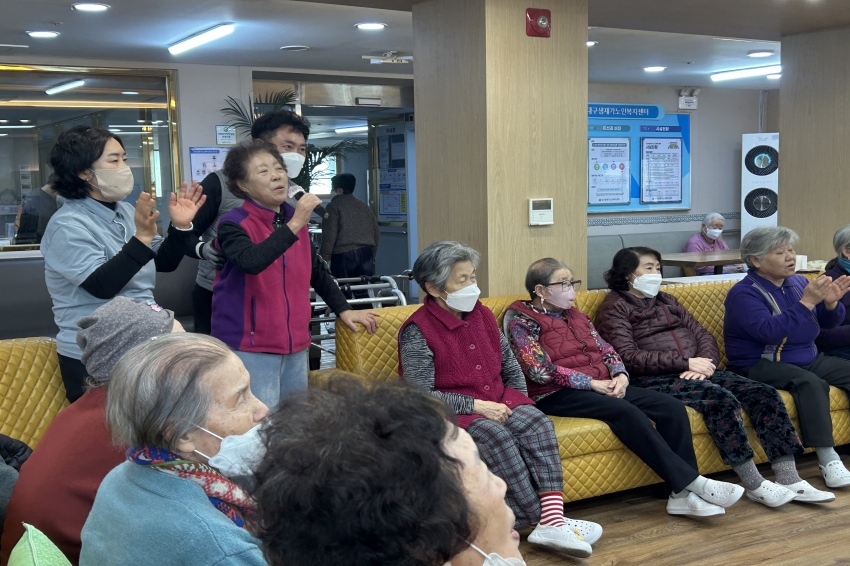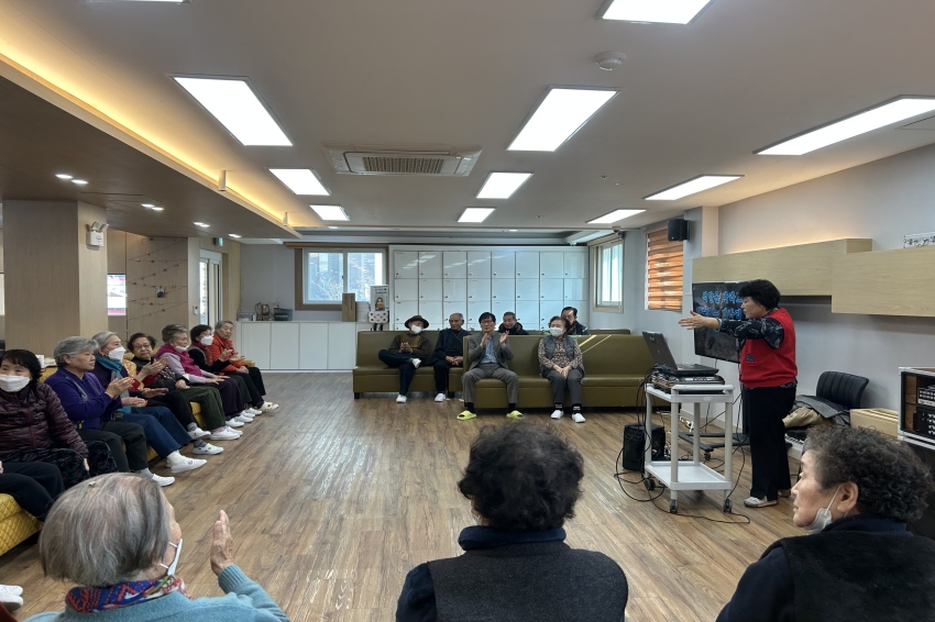 2026.02.05 힐링음악교실 프로그램 최고관리자 0 151 02.05 14:54 봄의 시작을 알리는 입춘이 지나고 나른함이 찾아온 오후,대구샘 주간보호센터는 '힐링 음악 교실'의 열기로 가득 찼습니다.신나는 리듬에 맞춰 노래를 부르고 박수를 치며 어르신들 간의 따뜻한 유대감을 나누는 시간이었는데요처음 오신 어르신들도 어느새 긴장을 풀고 즐겁게 어울리시는 모습을 보며 무척 뿌듯해지는 하루였습니다~