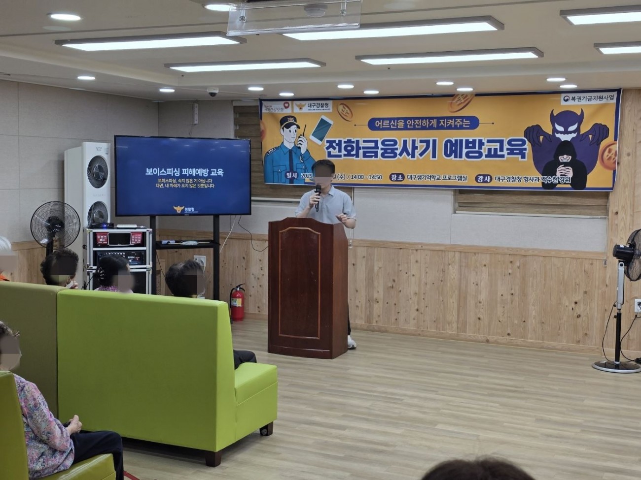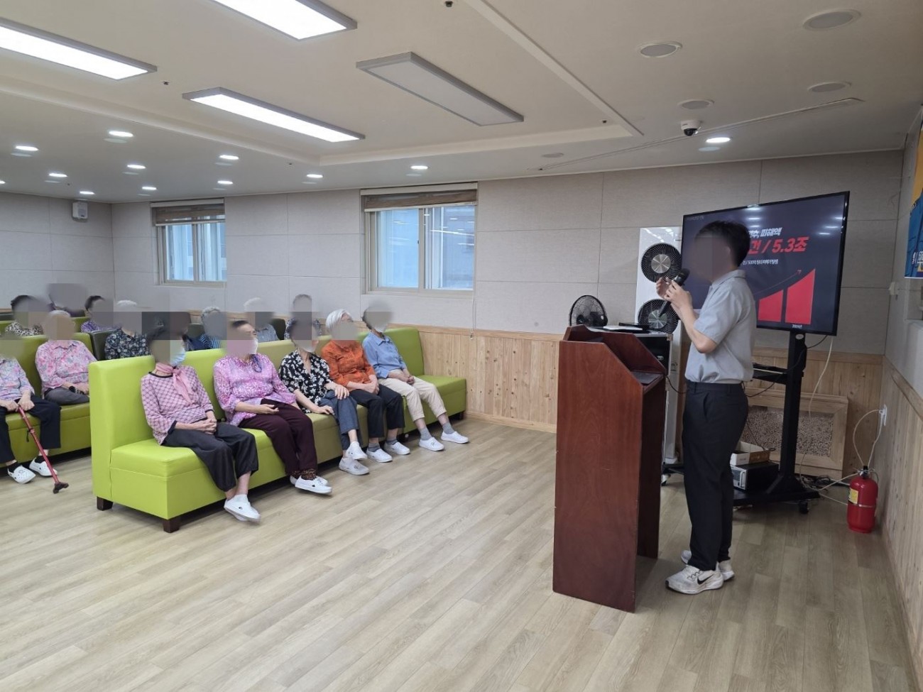 전화금융사기 예방교육 최고관리자 0 158 10.16 13:18 어르신들과 함께한 전화금융범죄 예방교육“내가 안전하게 지킬 수 있는 방법은 무엇일까?”어느 맑은 오후, 국민건강보험공단과 대구경찰청이 함께 마련한 특별한 시간을 가졌어요!이번 프로그램은 바로, 어르신들을 위한 전화금융범죄 예방교육!다양한 보이스피싱 사기 유형을 알아보고, 현명하게 대처하는 방법을 배워보는 뜻깊은 자리였답니다.