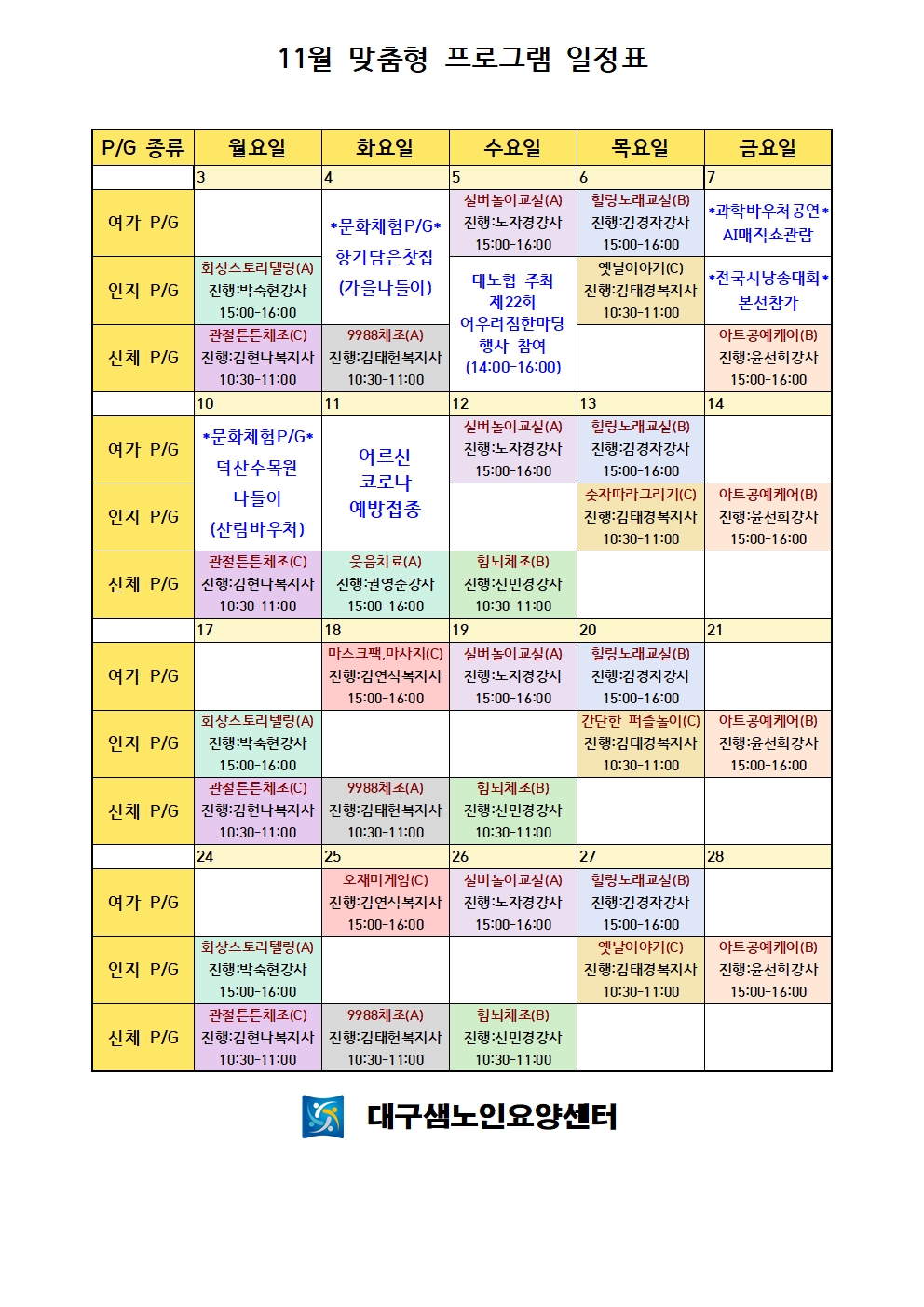 2025년 11월 프로그램 계획표 안내드립니다^^