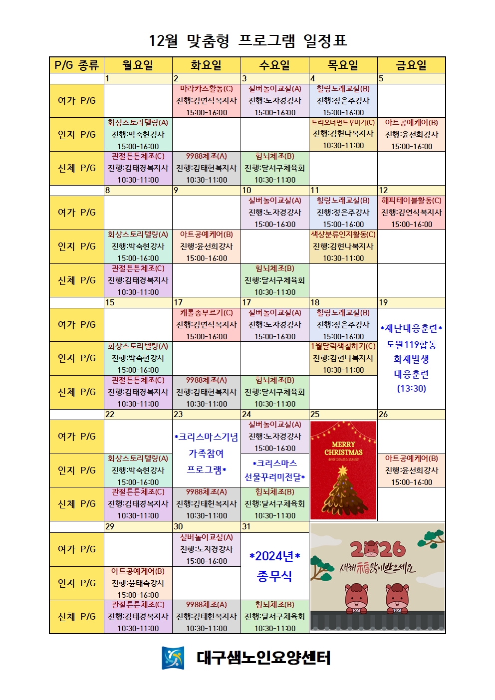 2025년 12월 프로그램 계획표 안내드립니다^^