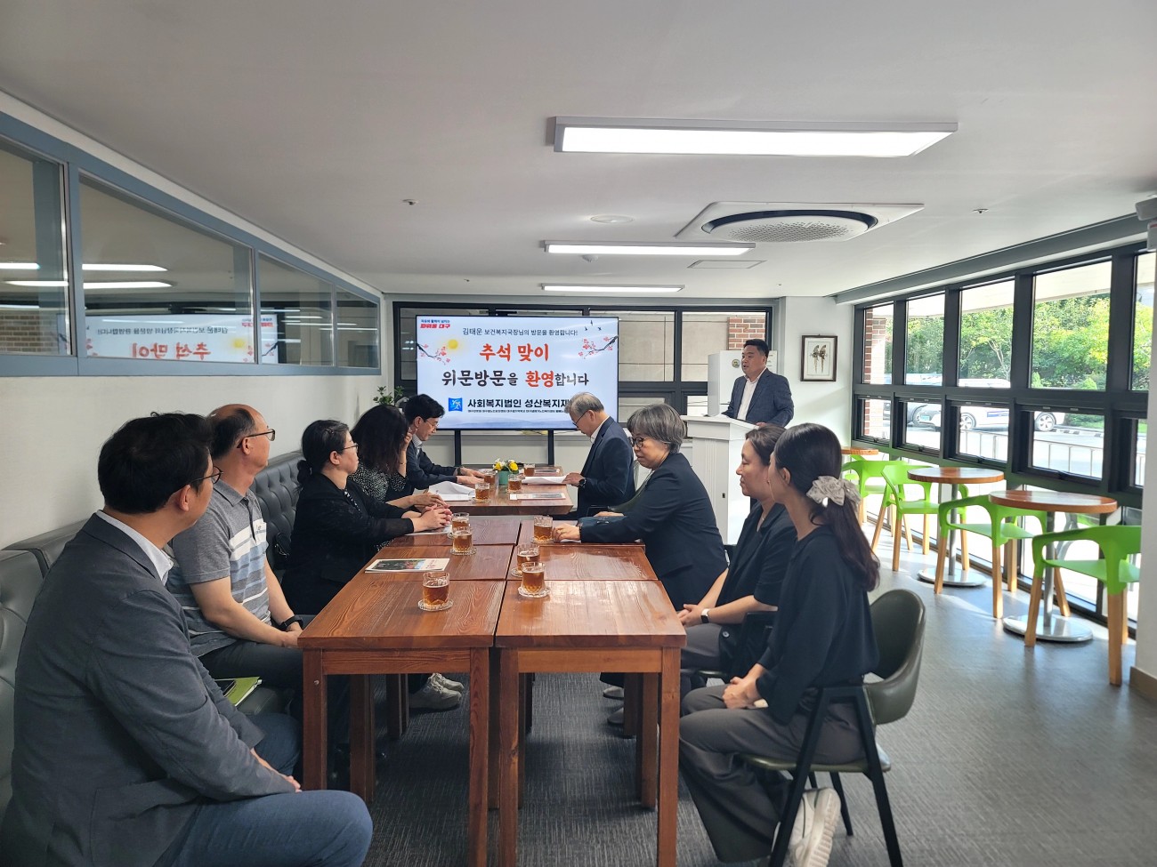 2025년 대구과역시 보건복지국 추석맞이 시설 위문 방문 최고관리자 0 482 2025.09.29 17:03 [2025년 대구광역시 보건복지부 추석맞이 시설 위문 방문] 2025년 9월 29일 월요일 오후 15시 대구시와 달서구청에서 다가오는 추석을 맞이하여 성로원 어르신들에게 명절 인사를 드리기 위해 바쁘신 와중에 시간을 내어 방문해 주셨습니다.특별히 오늘은 김태운 대구시청 보건복지국 국장님께서 자리를 빛내주셔서 더욱 뜻 깊은 날이었습니다.