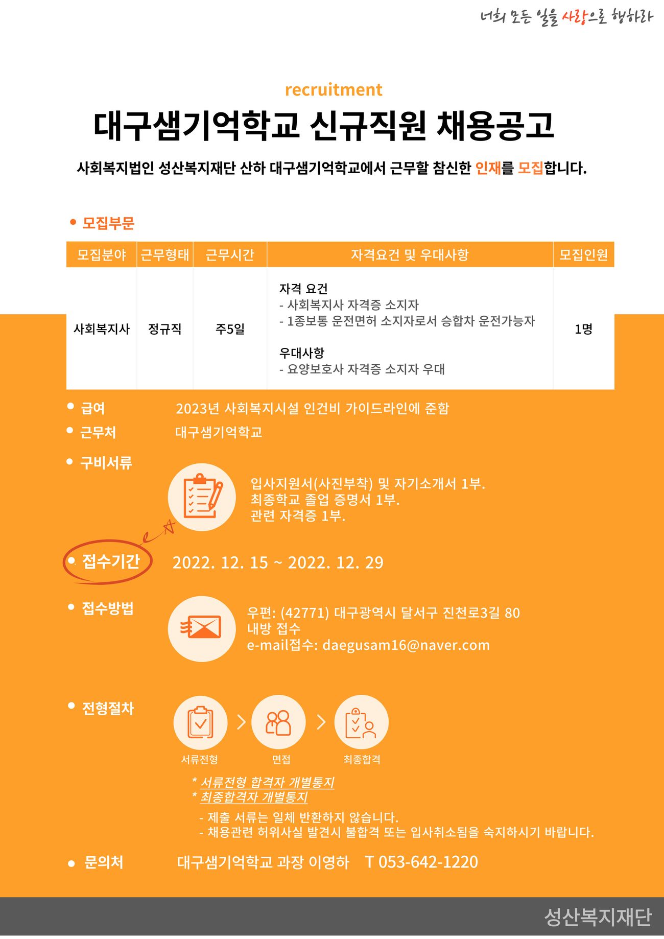 대구샘기억학교 사회복지사 채용공고