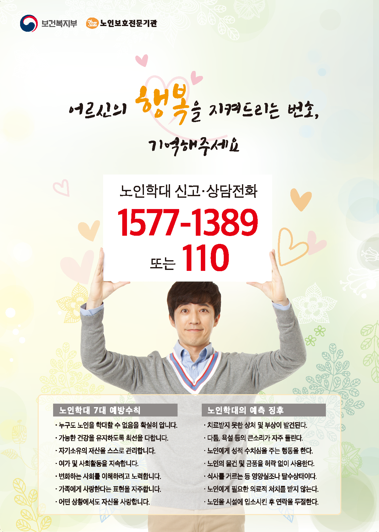 아울러 어르신들의 인권 및 노인학대와 관련한 건의사항 및 기타 궁금한 사항이 있으시면 언제든지 연락주시면 관련 절차에 따라 조치하도록 하겠습니다.