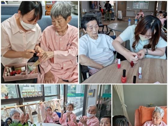 오늘은 어르신들에게 예쁘게 네일아트를 해드렸습니다.