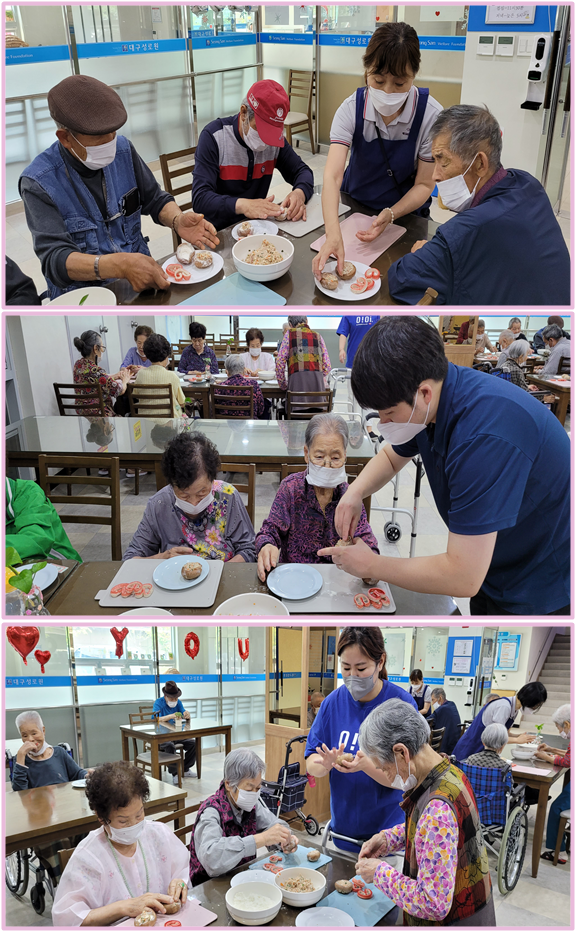 푸드테라피 - 이색전 굽기(버섯전, 하트게맛살전) 성산홍보실 0 1674 2022.06.09 19:40 2022. 05. 24 (화) 대구성로원 " 푸드테라피 - 이색전 굽기(버섯전, 하트게맛살전)