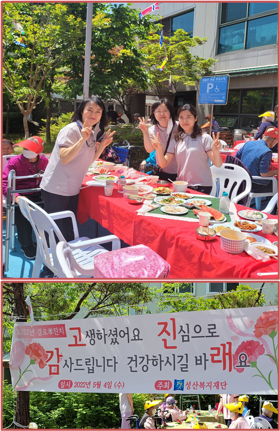 22년 경로 孝 잔치 성산홍보실 0 1301 2022.05.10 15:52 22년 경로 孝 잔치 함께여서 행복한어버이날 기념 孝 잔치일시 : 2022년 5월 4일 수요일주최 : 성산복지재단대상 : (대구샘노인요양센터,대구성로원, 대구샘기억학교,대구샘재가노인복지센터)