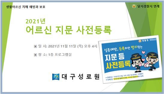 2021.11.11 목요일 대구성로원 "2021년 어르신 지문 사전등록 실시"