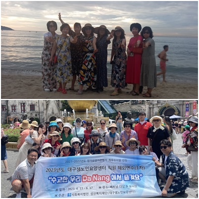 2023년 대구샘노인요양센터 직원 해외연수(3차) 성산홍보실 0 6209 2023.08.08 09:53 2023년 대구샘노인요양센터 직원 해외연수(3차) “수고한 우리 Da Nang에서 즐겨요!” 일자: 2023.06.13.~06.17 장소: 베트남 다낭, 호이안